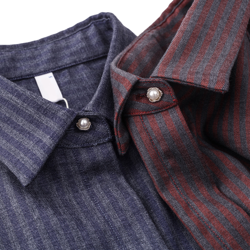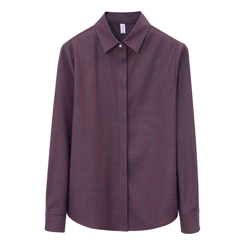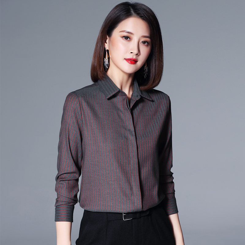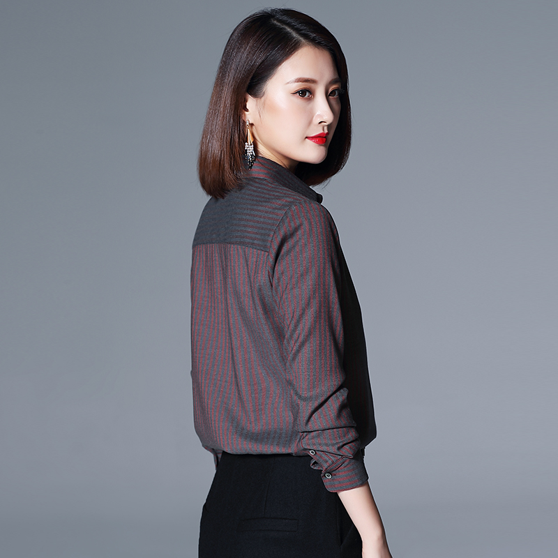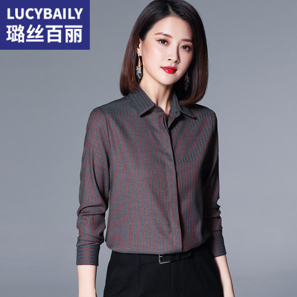 璐丝百丽条纹衬衫女长袖春秋法式别致上衣打底气质时尚职业装衬衣