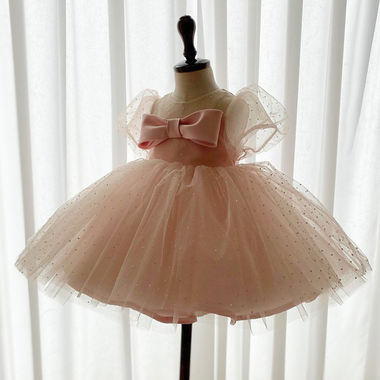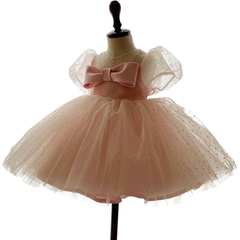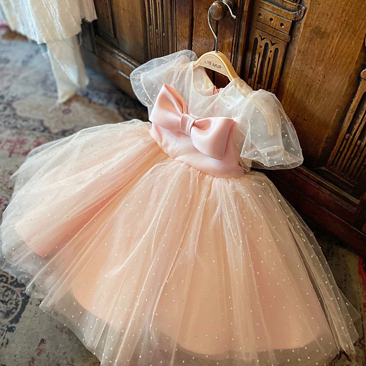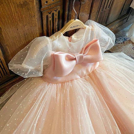 周岁礼服粉色公主裙女童宝宝女孩演出服薄轻奢儿童婚纱蓬蓬裙