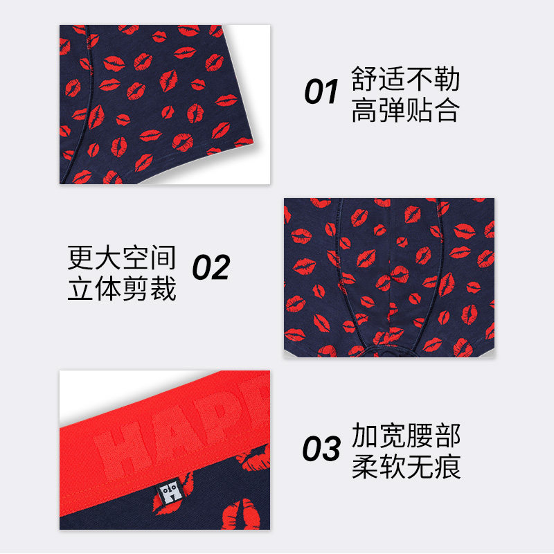 【情人节礼盒】Happy Socks男士内裤送礼节日创意男友平角裤衩