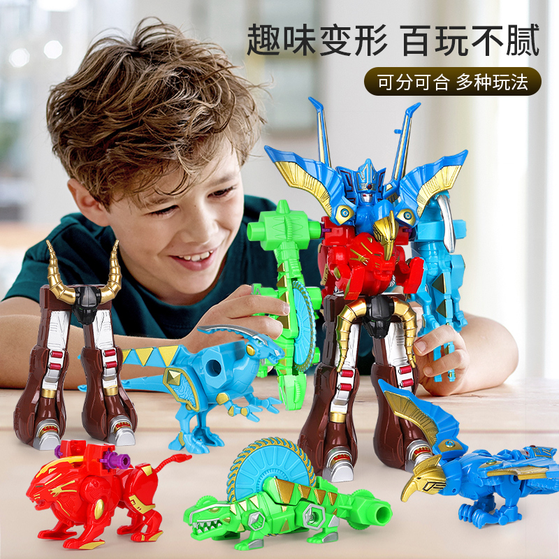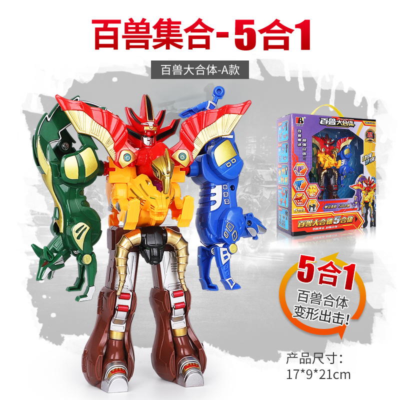 新款百兽大合体动物变形五合体机器人金刚拼装牛狮虎王男孩子玩具