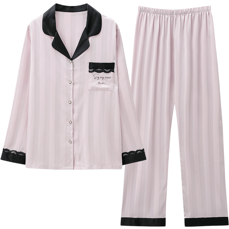 马克公主情侣睡衣春秋冰丝长袖条纹简约高档男女士四季通用家居服