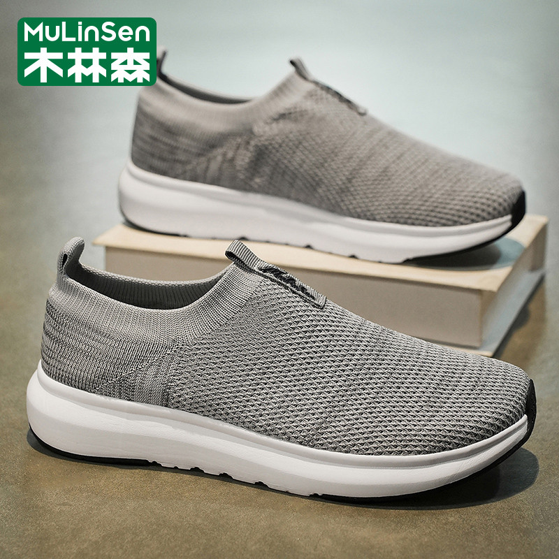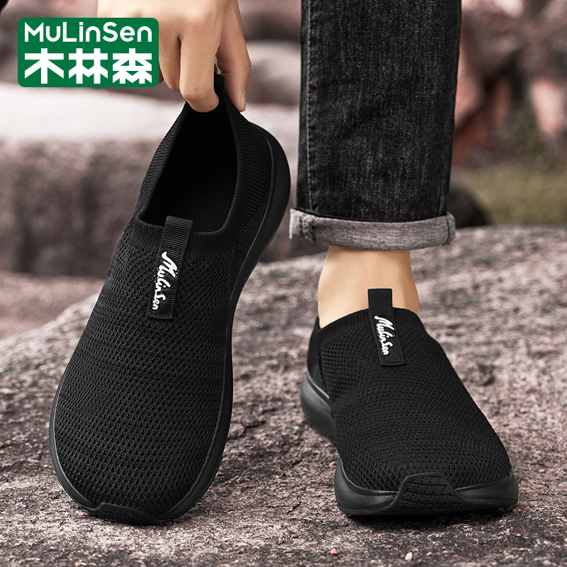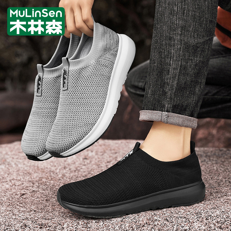 木林森男鞋冬季休闲飞织网面男士一脚蹬爸爸软底防滑工作健步网鞋
