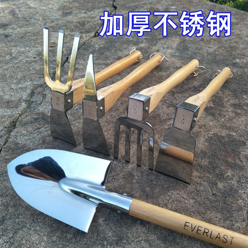 园艺种花种f菜除草挖土不锈钢两用小锄头木柄铲子家用农具工具