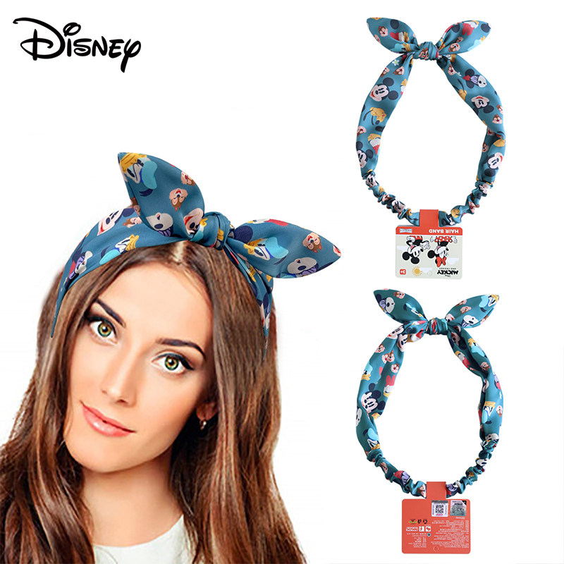 迪士尼蓝色个性小众可爱卡通装饰蝴蝶结发带米奇兔耳朵头带发饰女