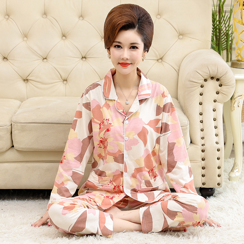11款▲睡衣女春秋季纯棉长袖长裤中年妈妈可外穿女士全棉家居服