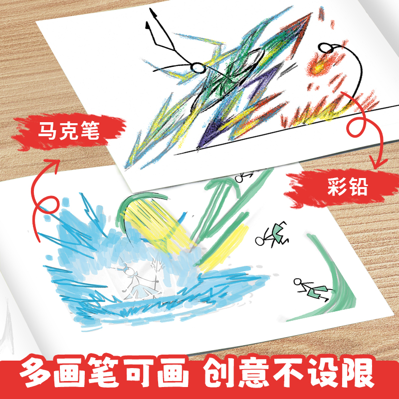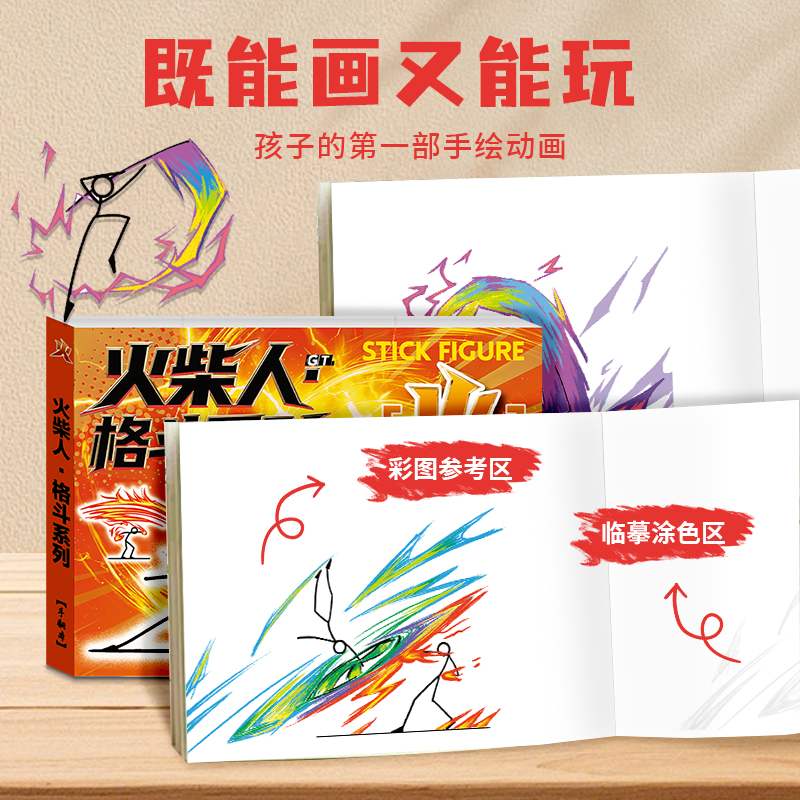火柴人格斗手翻书漫画线稿绘画本男孩手绘描摹本儿童创意翻页连环画小学生素描临摹简笔画控笔教程书动画描线