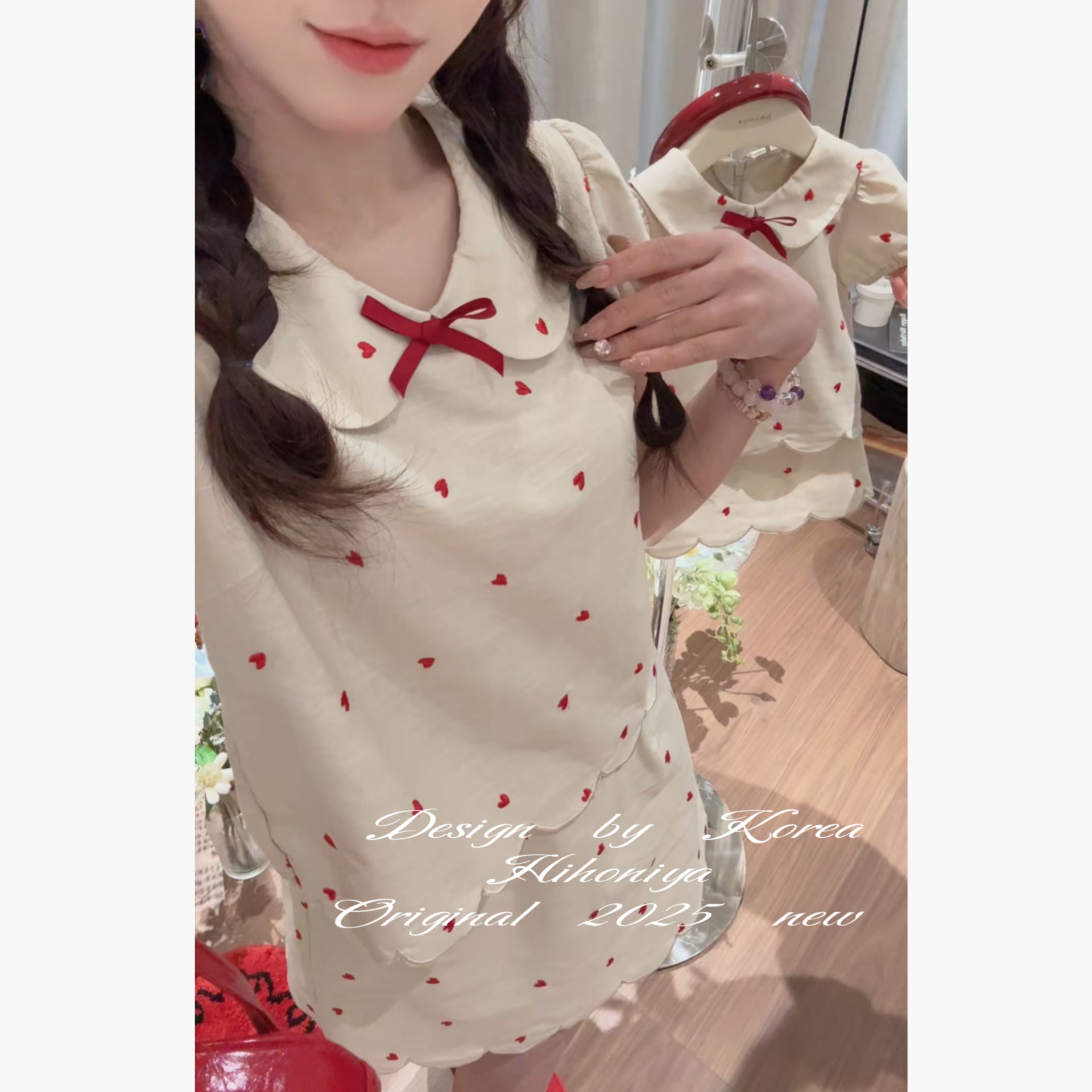 Spring韩国童装2025年夏季新款亲子甜美波点套装女童半身裙两件套