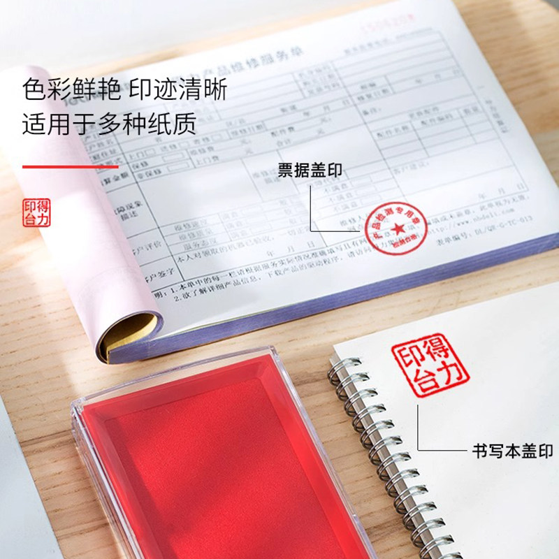 得力快干印台红色印泥盒大号速干印尼银行财务盖章用印油小号便捷秒干按手印红印泥指纹办公用章蓝黑色印章盒
