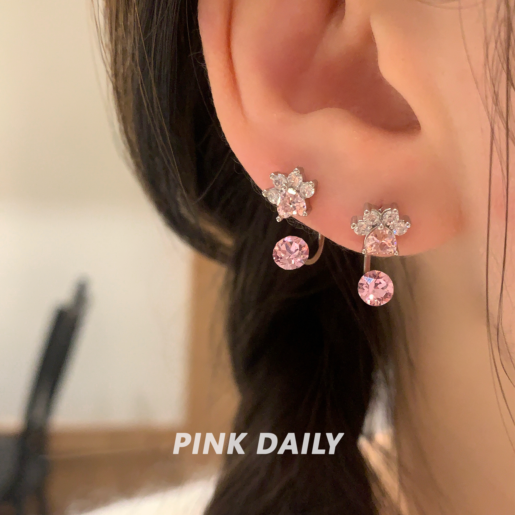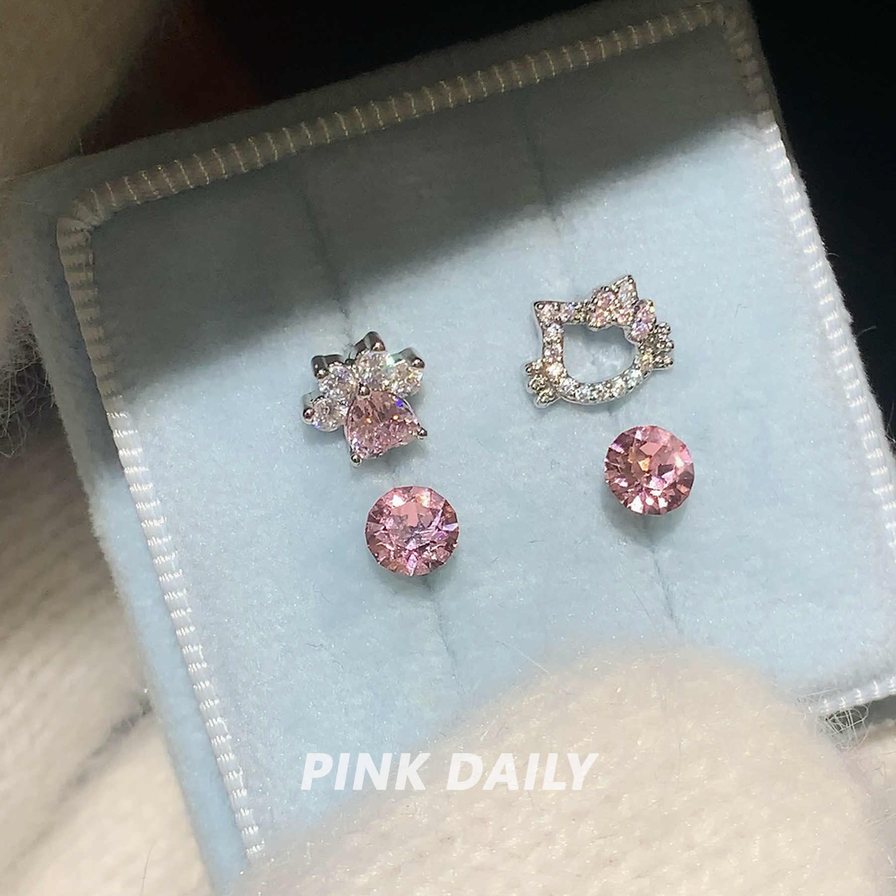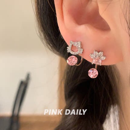 Pink Daily爆闪满钻KT猫猫爪马蹄环耳钉耳环女可爱卡通耳骨钉耳饰
