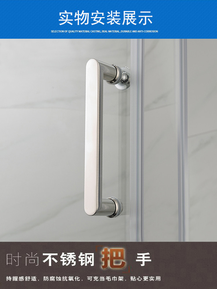 加厚304不锈钢方管带小头拉手淋浴房现代简约浴室玻璃门方形把手