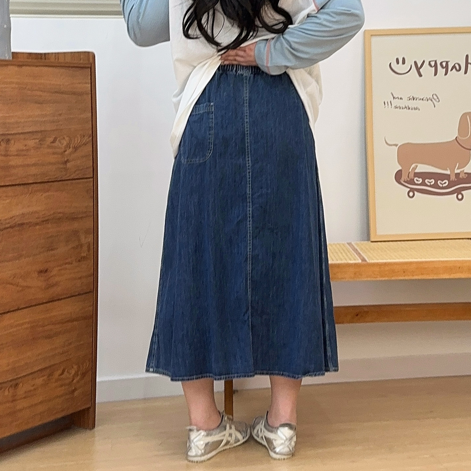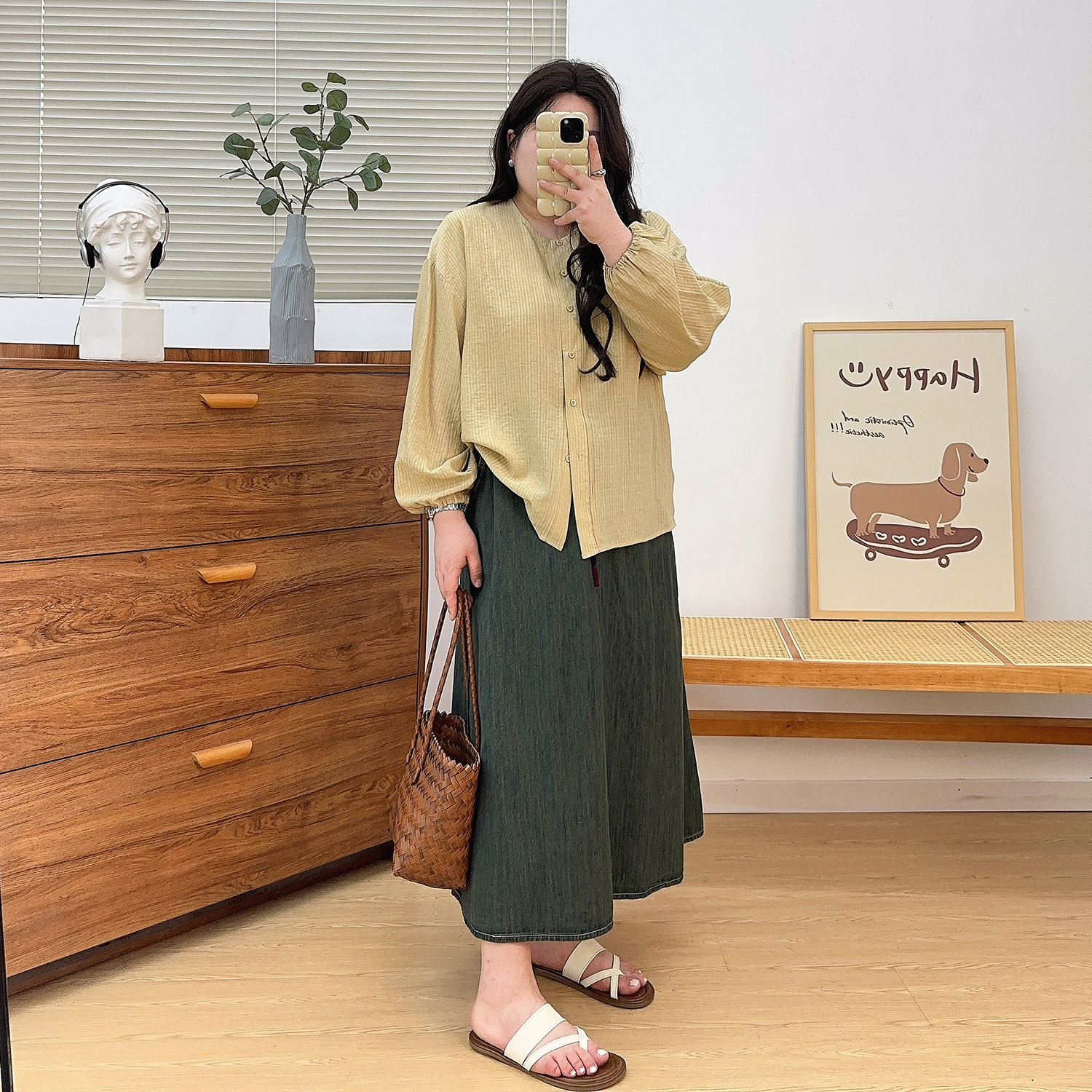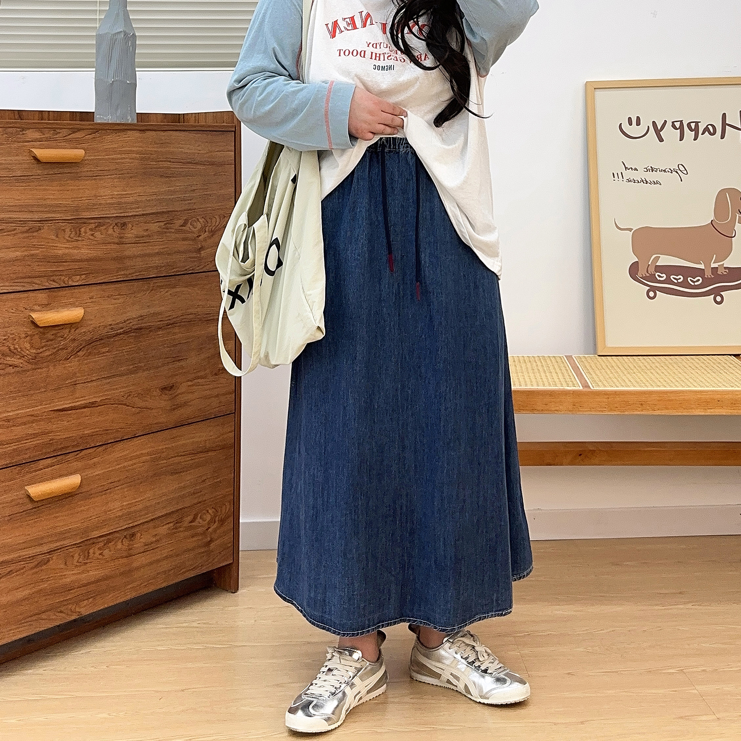 宛宛大码女装牛仔半身裙夏季胖mm高腰显瘦A字裙遮肉百搭半身伞裙