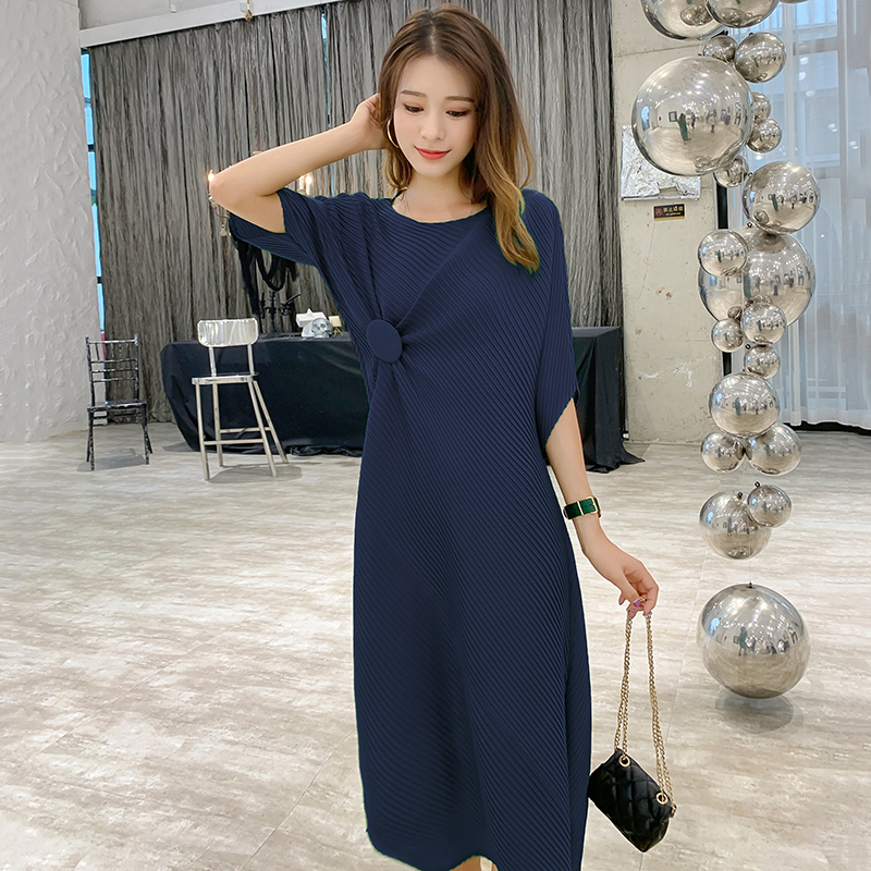压褶褶皱裙子洋气百褶裙2025年新款春夏时尚宽松大码中长款连衣裙