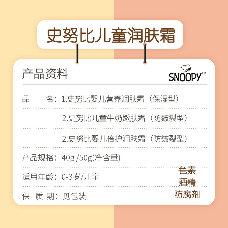 史努比儿童面霜宝宝霜护肤霜润肤乳滋润保湿四季补水防皲防裂正品