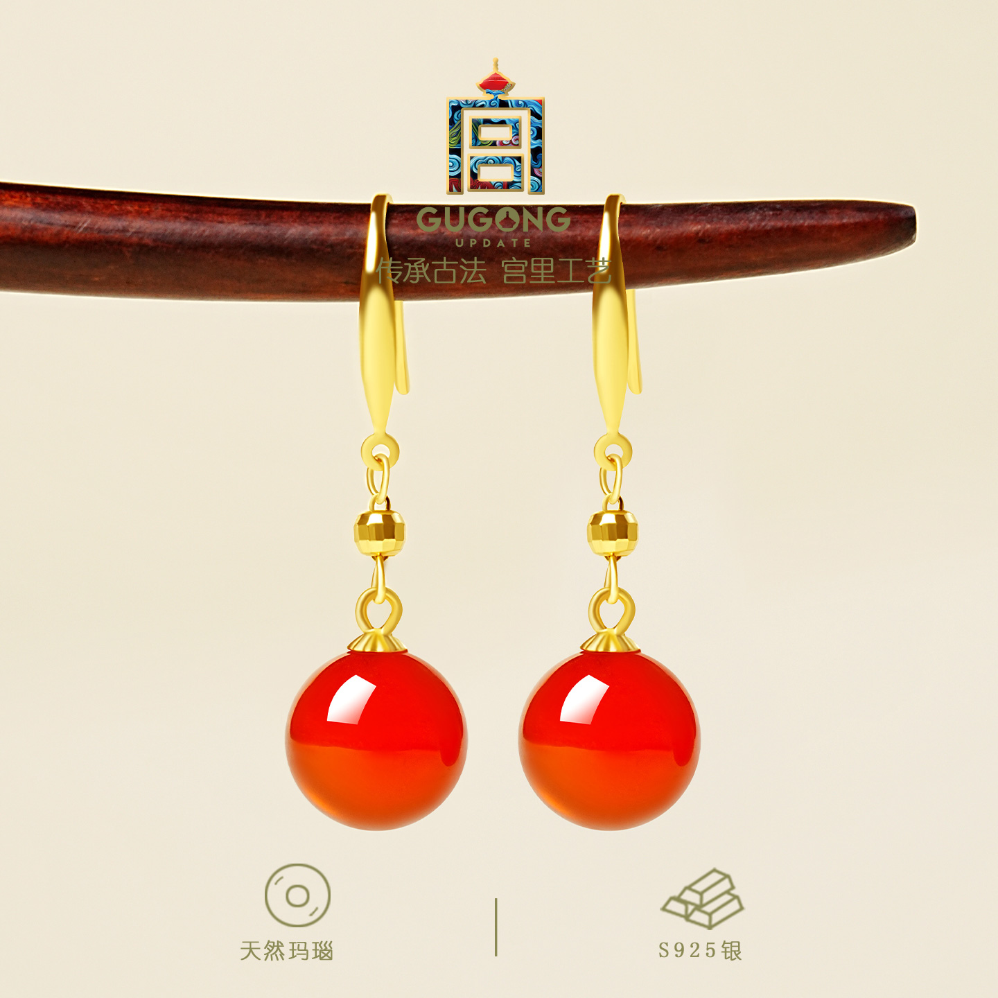 宫里上新天然高冰红玛瑙耳饰
