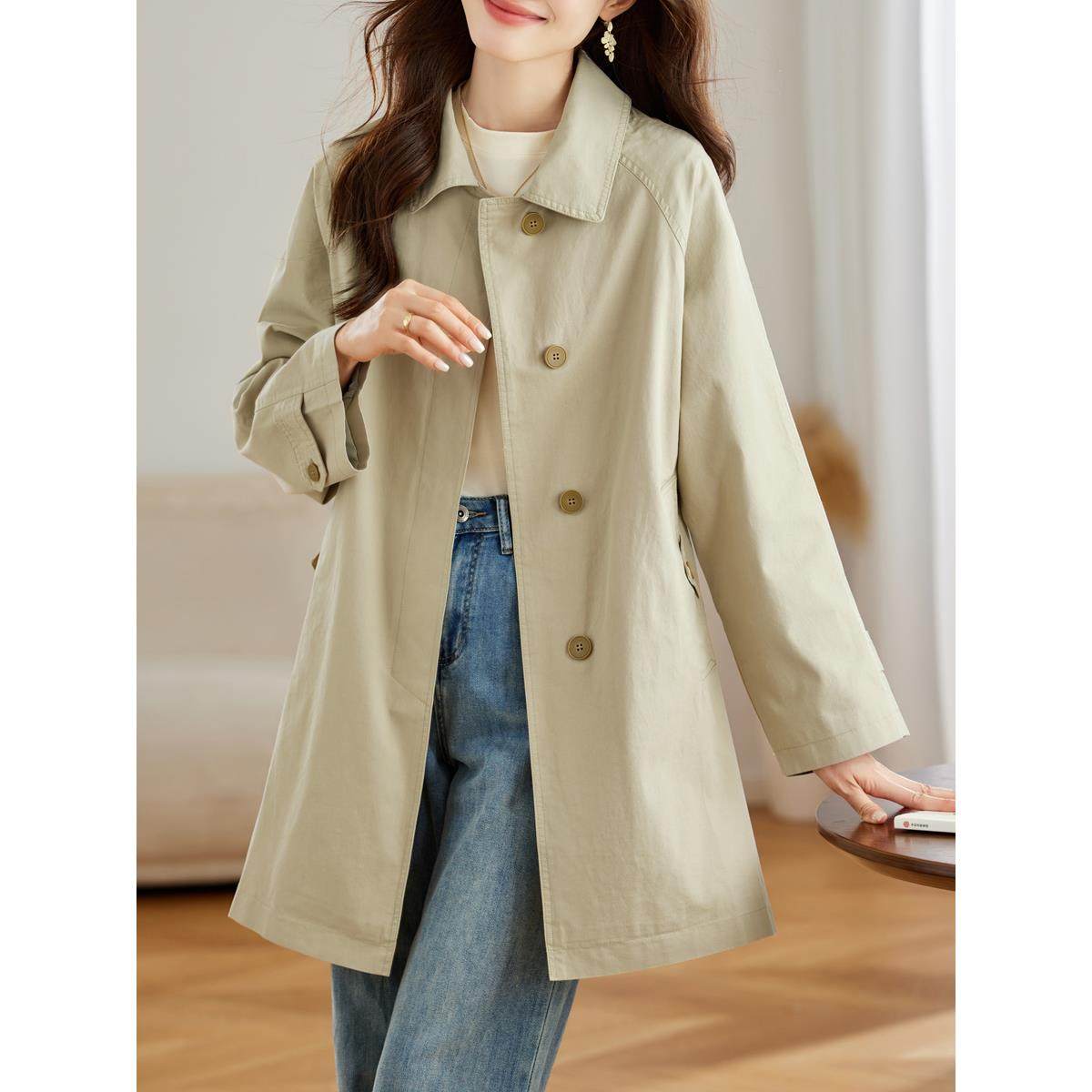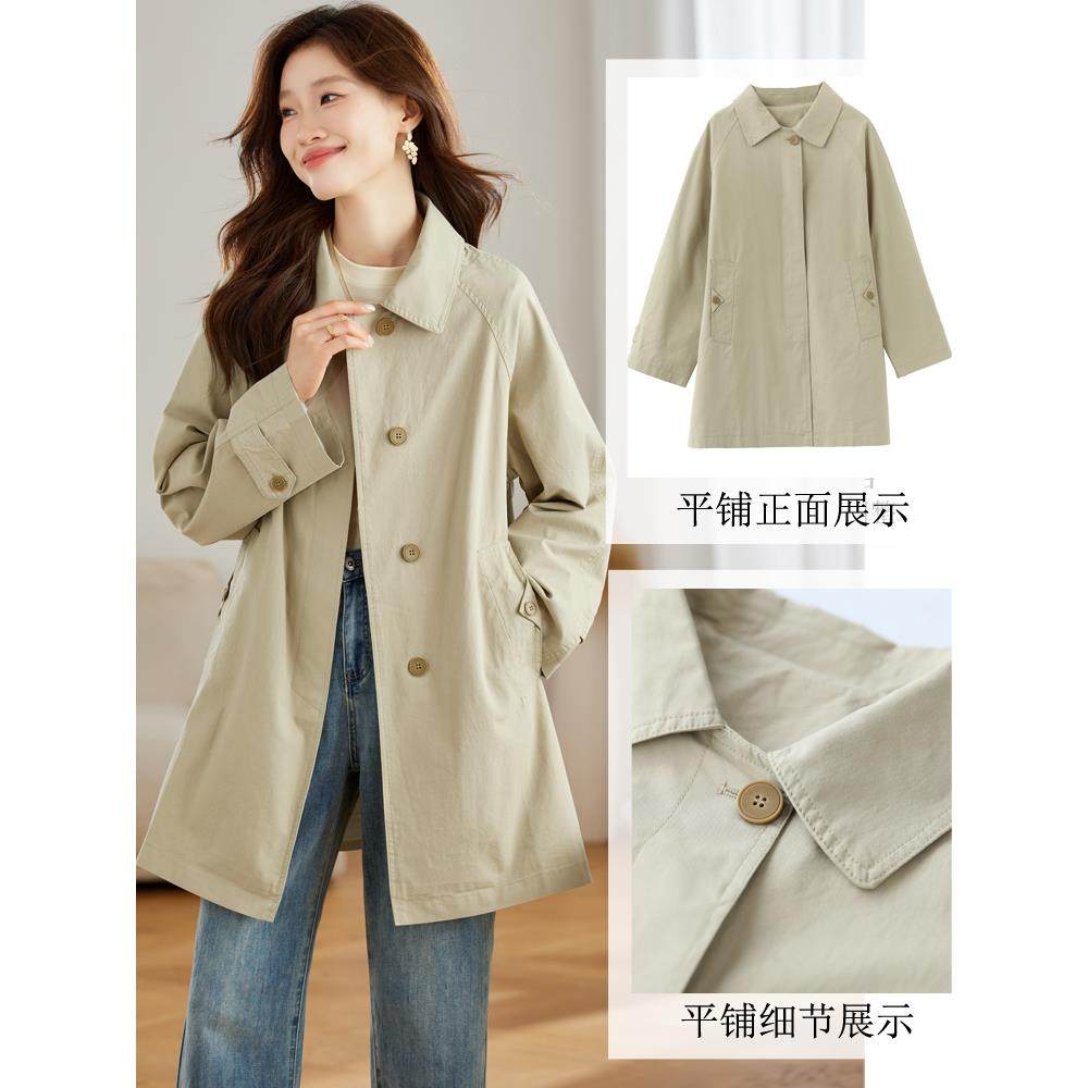 秋装纯棉中长款休闲口袋外套2025新款长袖卡其洋气翻领宽松风衣女