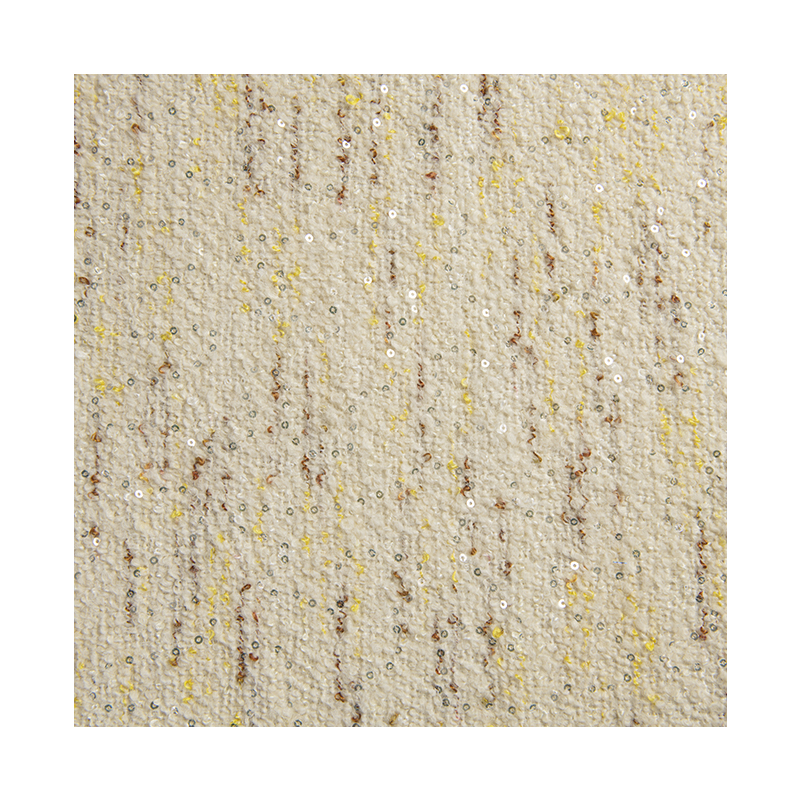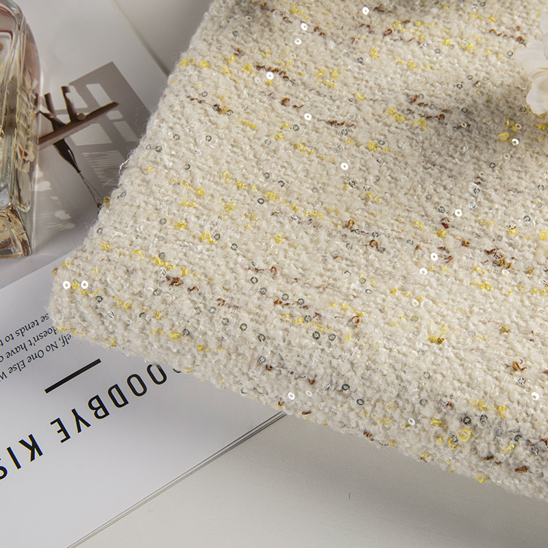 米色亮片含羊毛高档小香风布料粗花呢diy外套连衣裙马甲服装面料