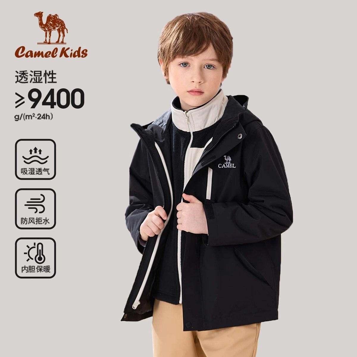 骆驼儿童秋冬冲锋衣三合一防风保暖登山服中大童滑雪服女童外套男