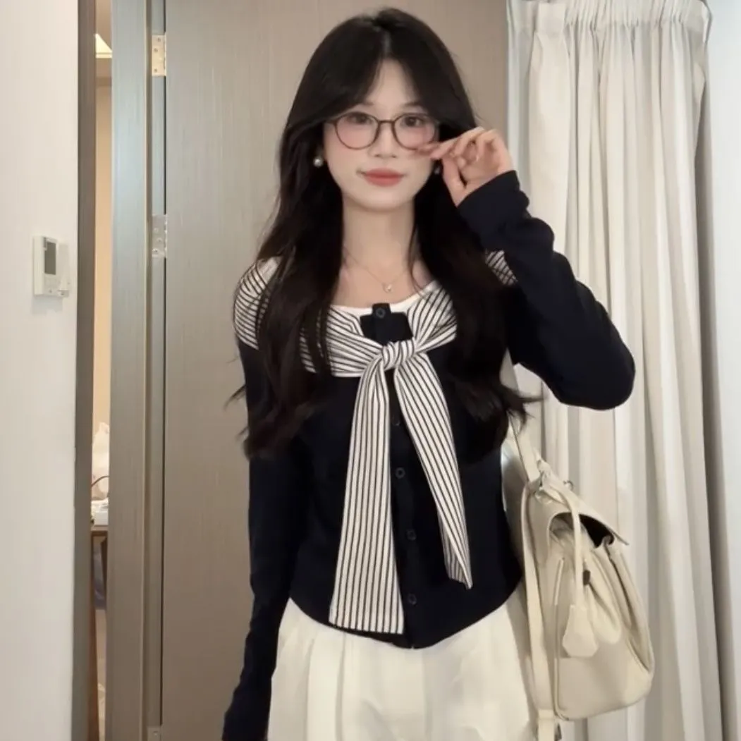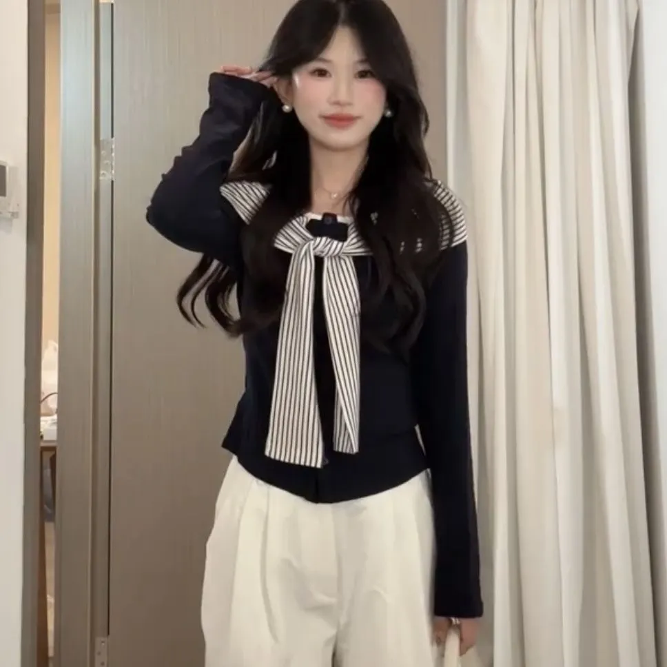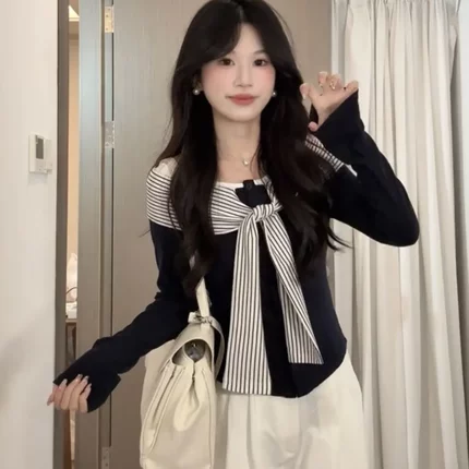 太爱啦!!【绑带假两件】韩系校园风长袖t恤INS超火秋冬显瘦打底衫