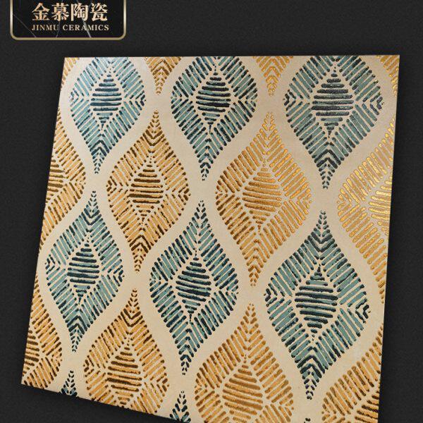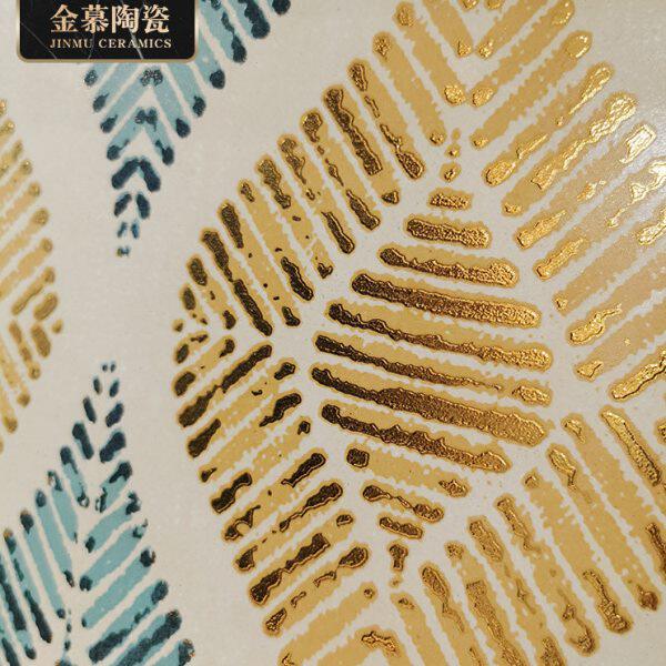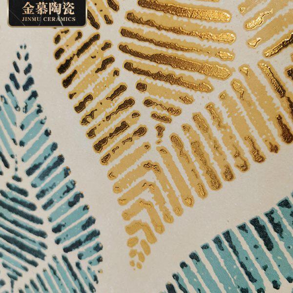 定制奢华斑驳镀金热带芭蕉叶背景墙瓷砖别墅豪宅酒店墙面砖哑光