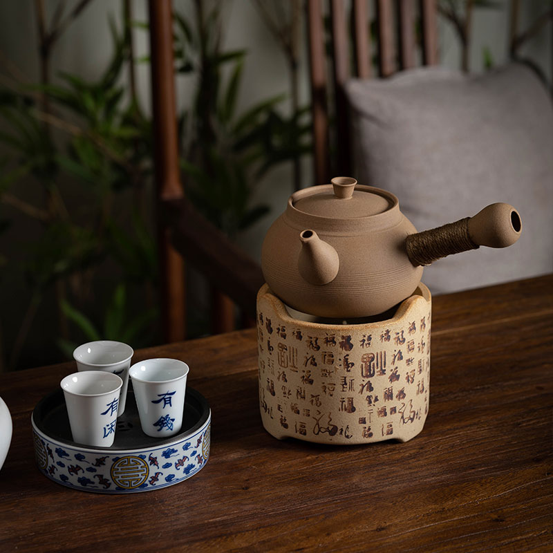 潮汕砂铫壶侧把壶煮茶壶 陶壶烧水壶陶瓷茶壶 烧水壶炭炉电陶炉