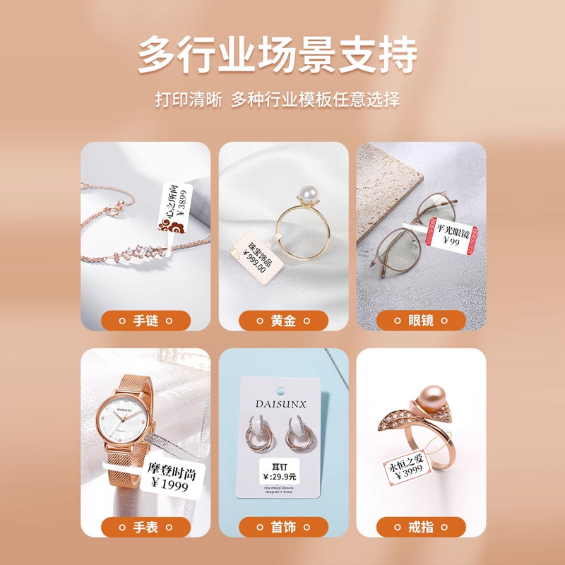 精臣B21/B1/B2Pro/B3S/B31/B4标签机打印纸珠宝吊牌标签纸首饰眼镜手镯玉石价格不干胶彩色热敏标签贴纸定制