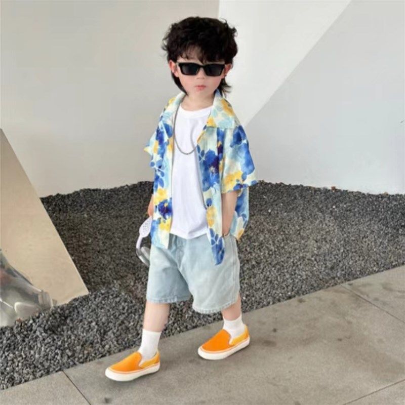 2024新款亲子装短袖衬衫一家三口夏季港风海边度假洋气母女连衣裙