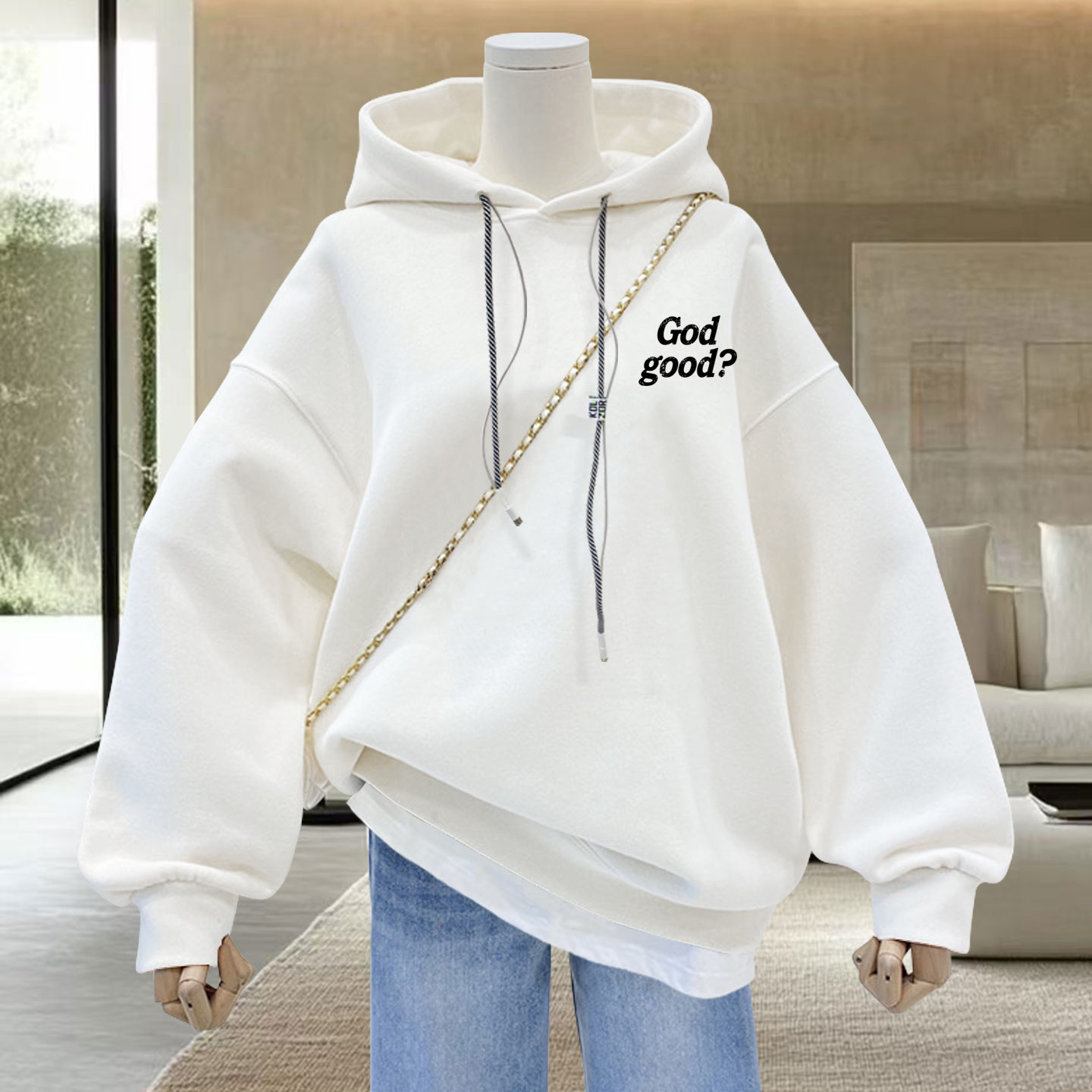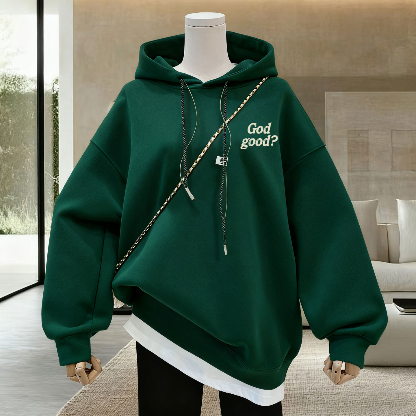小字母潮连帽卫衣女2025春秋冬宽松加绒加厚假两件中长款遮屁股潮
