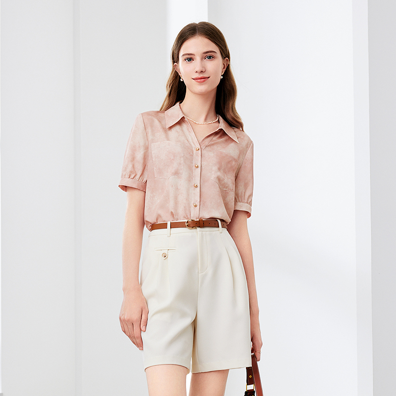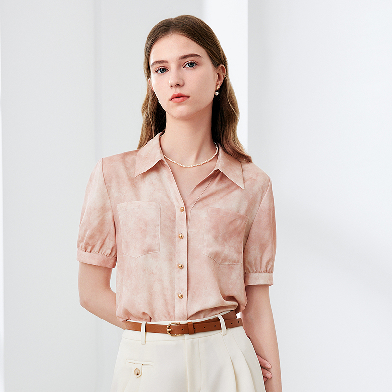 betu百图扎染衬衫夏款显瘦翻领时尚扎染短袖女式衬衫