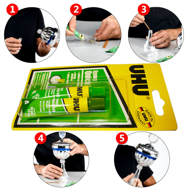 UHU德国原装进口AB胶300G承重u胶环氧粘合剂5分钟快干混合胶水塑料玻璃陶瓷金属手工透明强力补鞋模型胶万能