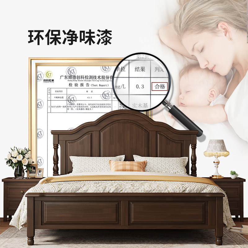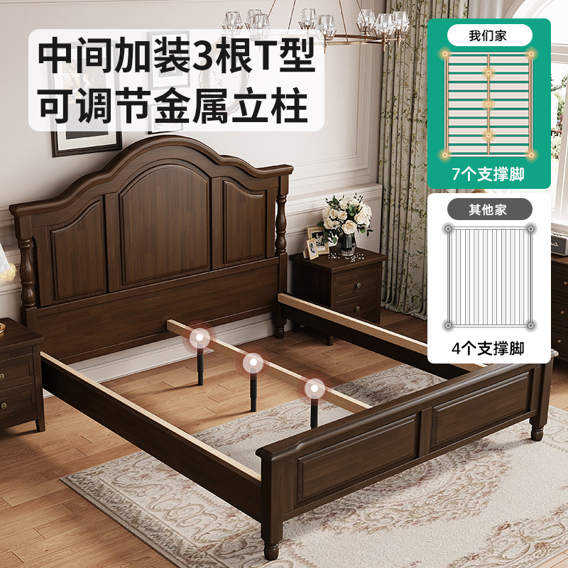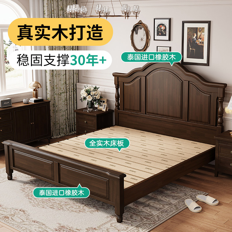 全友家居美式实木双人床1.8米现代简约设计 2米x2米大尺寸床架 橡