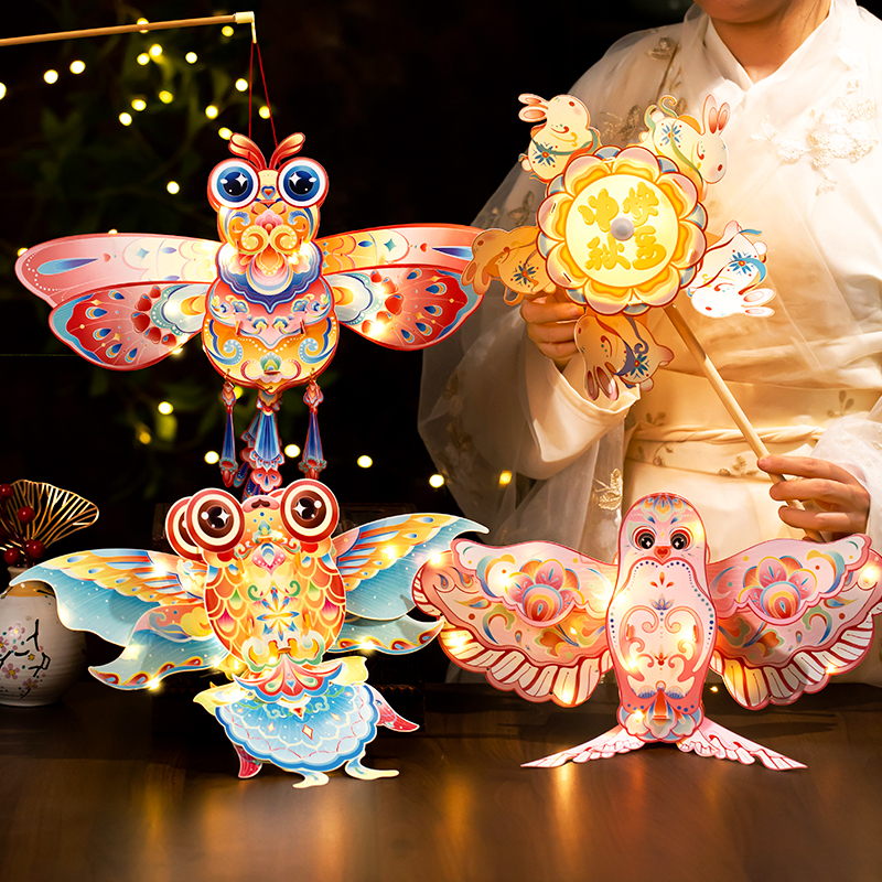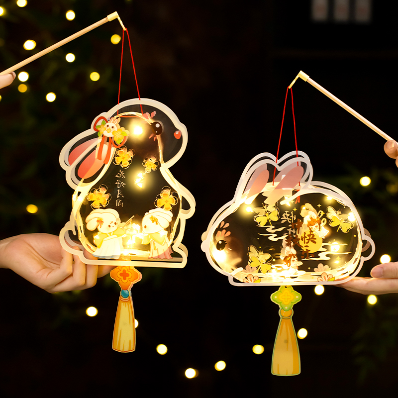 中秋节古风灯笼幼儿园儿童手提发光创意手工diy材料包玉兔小花灯