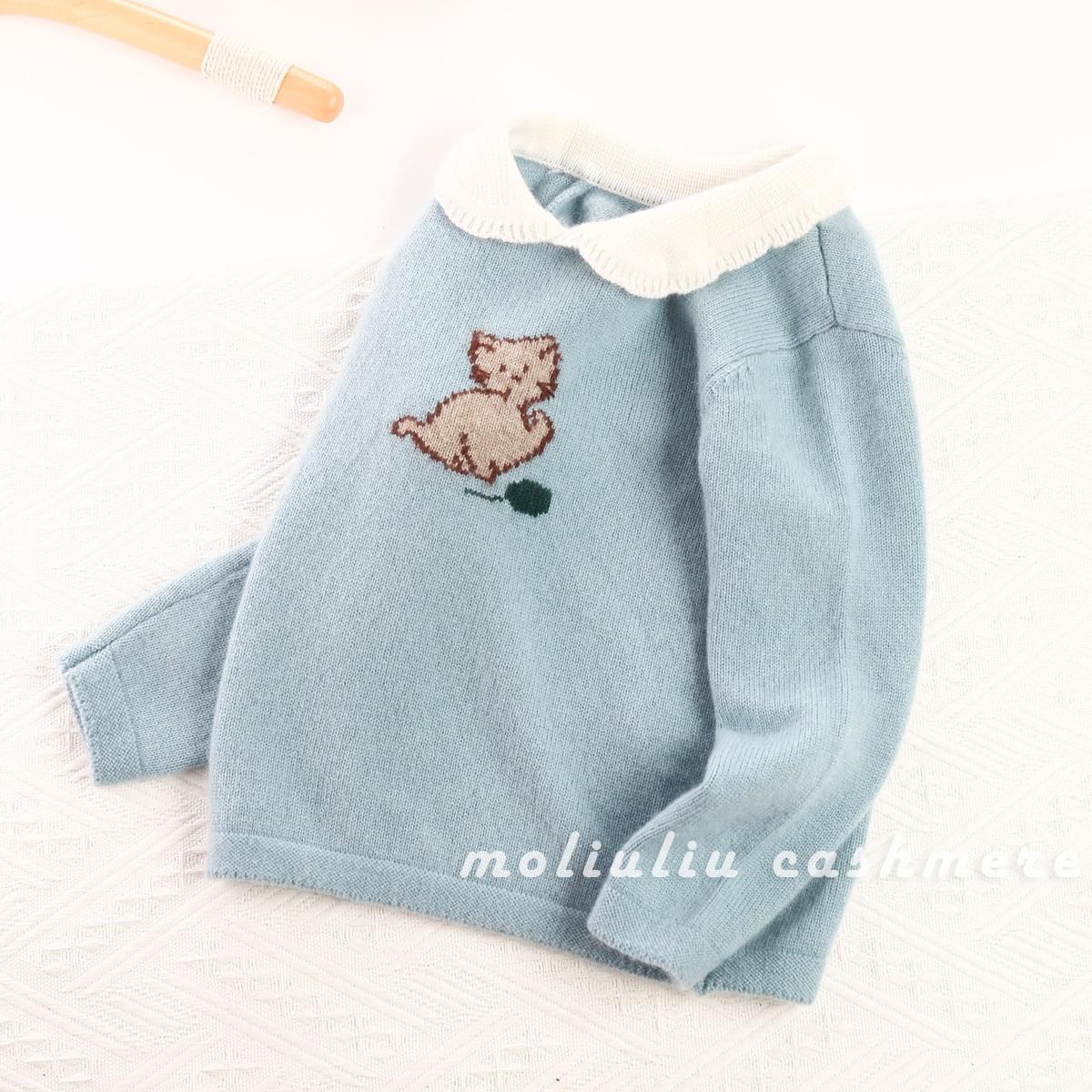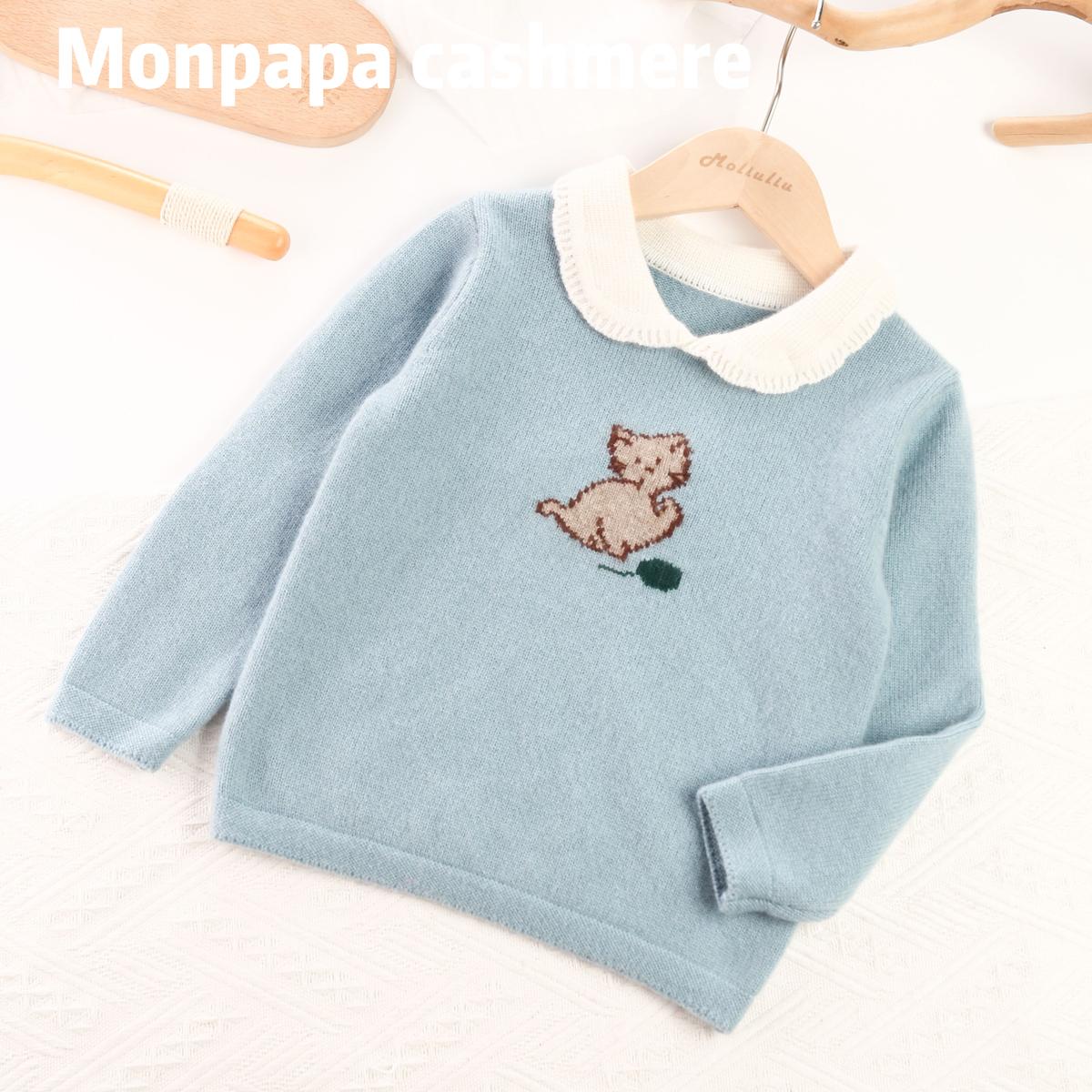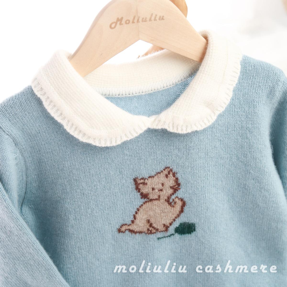 MOLIULIU女童纯羊绒衫儿童洋气娃娃领山羊绒秋冬宝宝套头毛衣开衫
