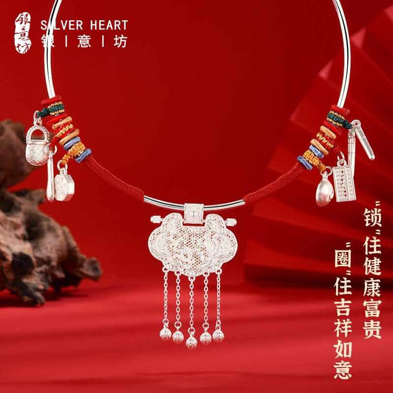宝宝项圈天子门生银锁纯银宝宝长命锁婴儿小孩银项链满月百天礼物