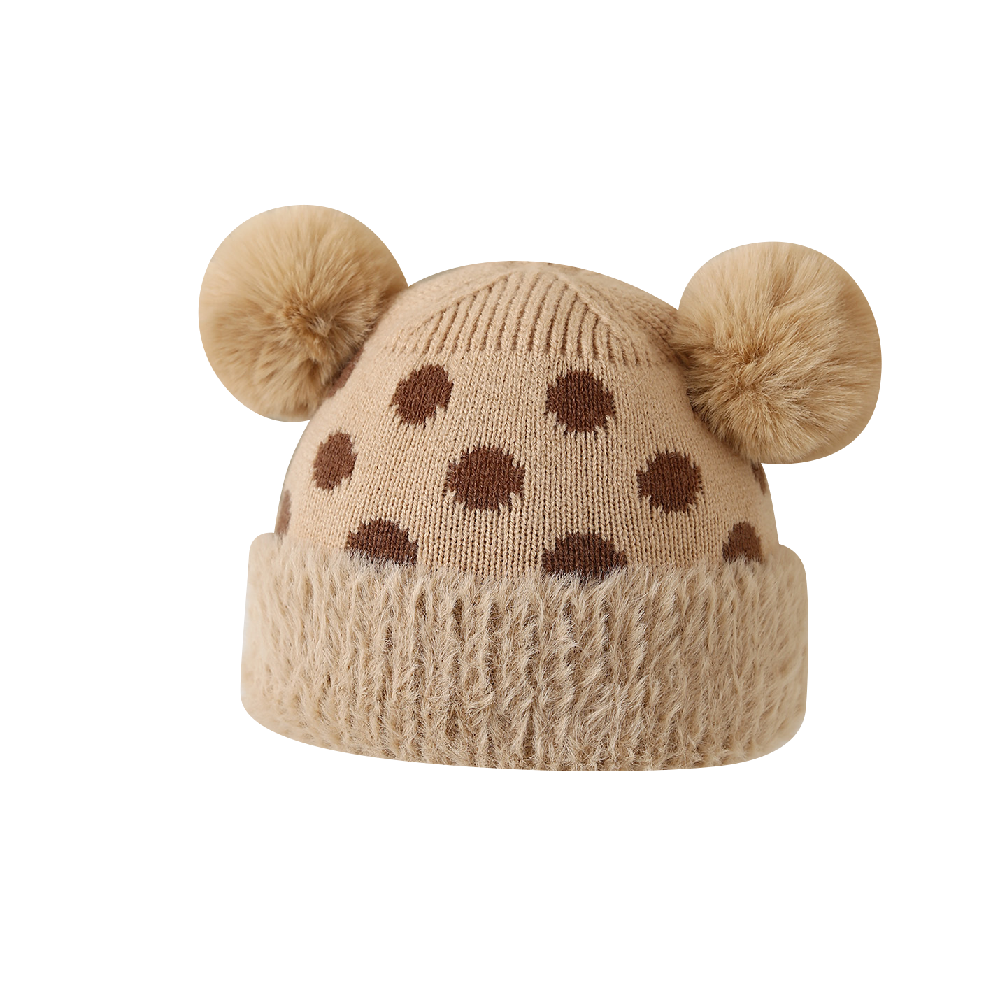宝宝帽子冬季可爱波点男女儿童套头帽秋冬保暖防风婴儿针织毛线帽