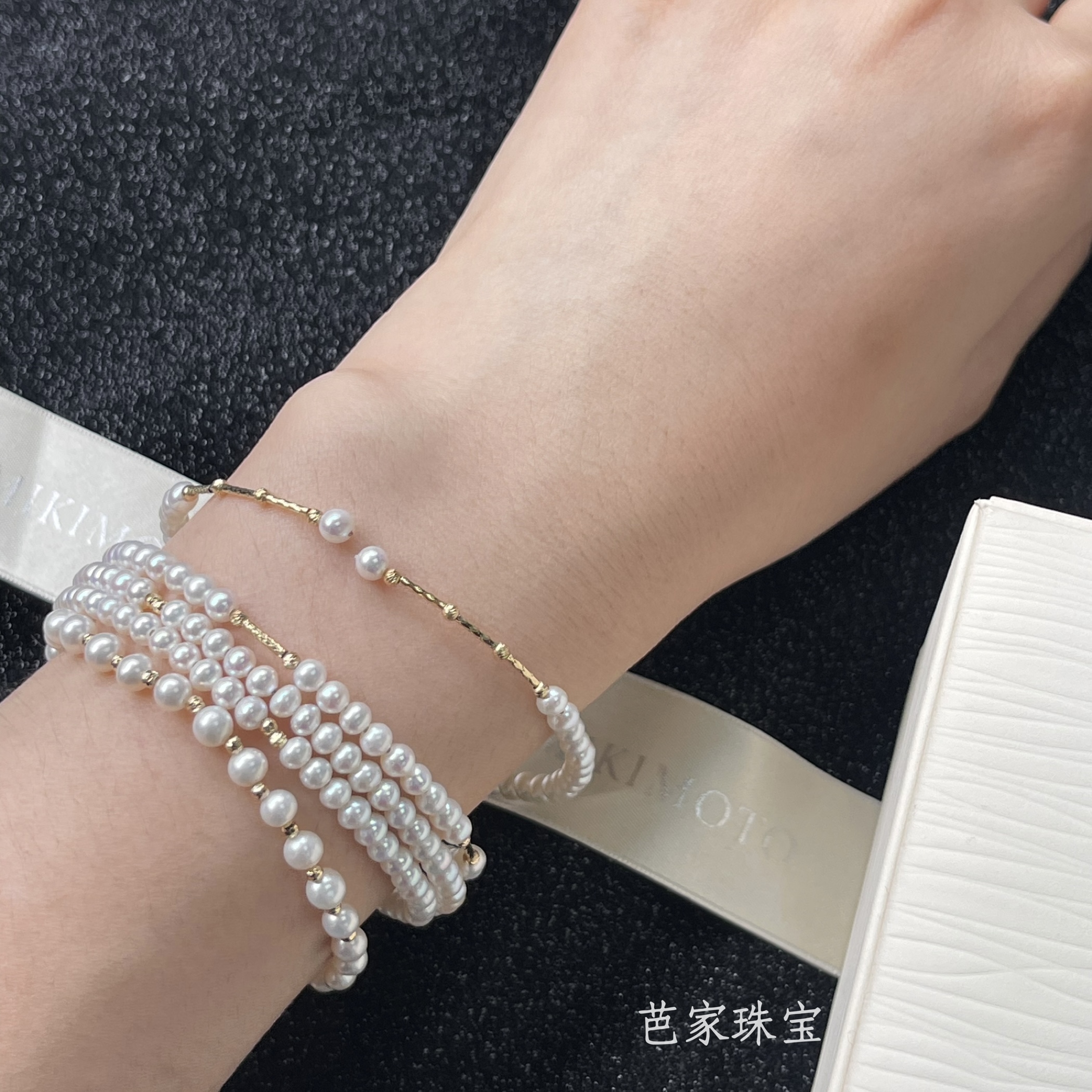 芭家珠宝 冬日轻奢 混搭风baby淡水珍珠18K金弹力手镯合辑