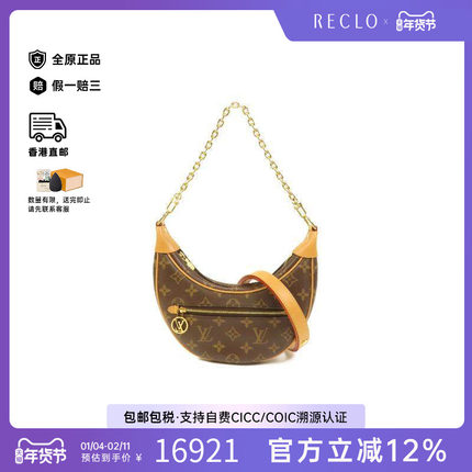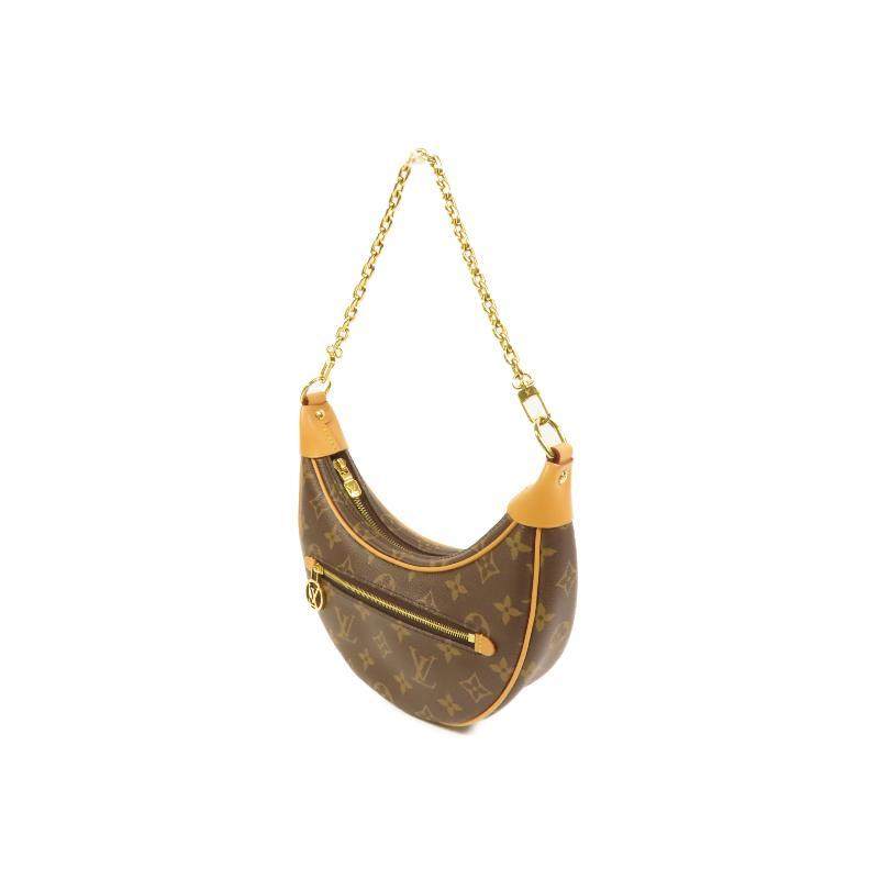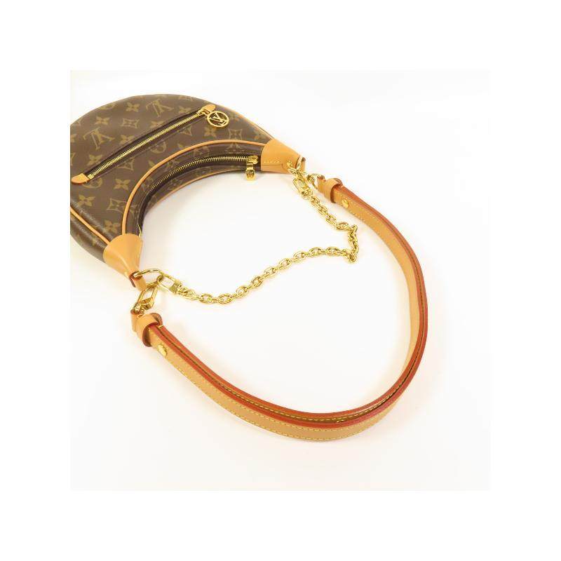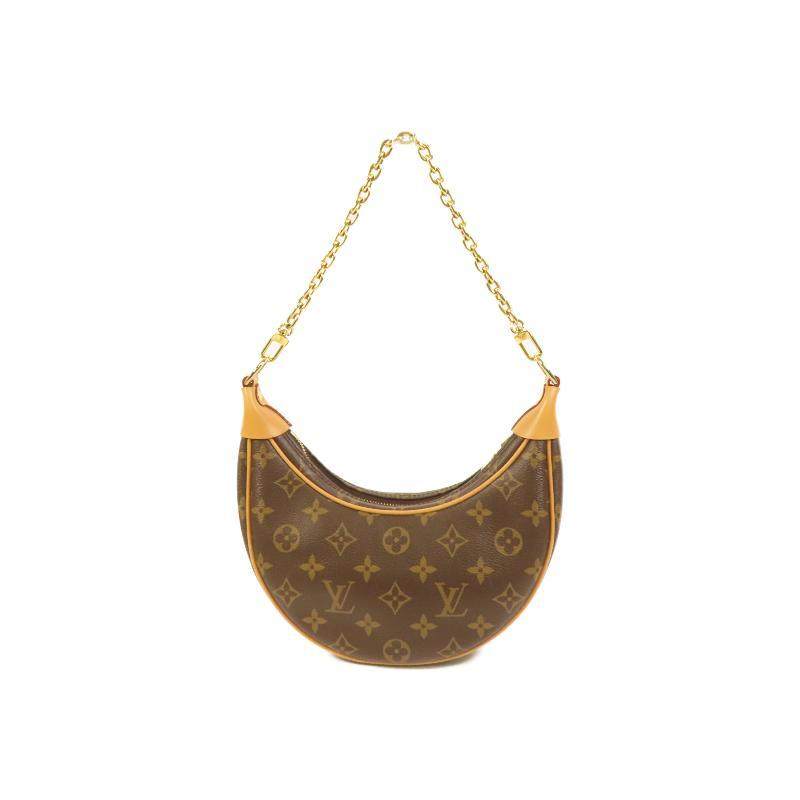 中古LV路易威登女包A级95新Loop月亮包帆布斜挎包棕色