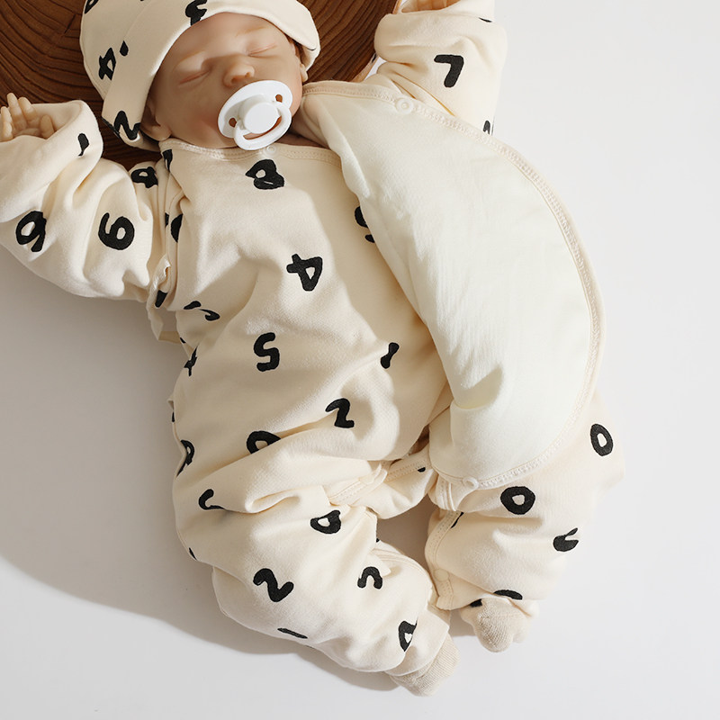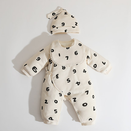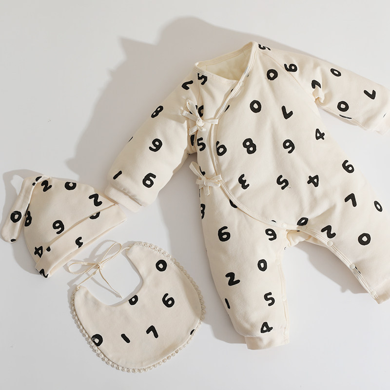 婴姿新生婴儿衣服秋冬季初生宝宝连体衣纯棉夹棉加厚哈衣爬服冬装
