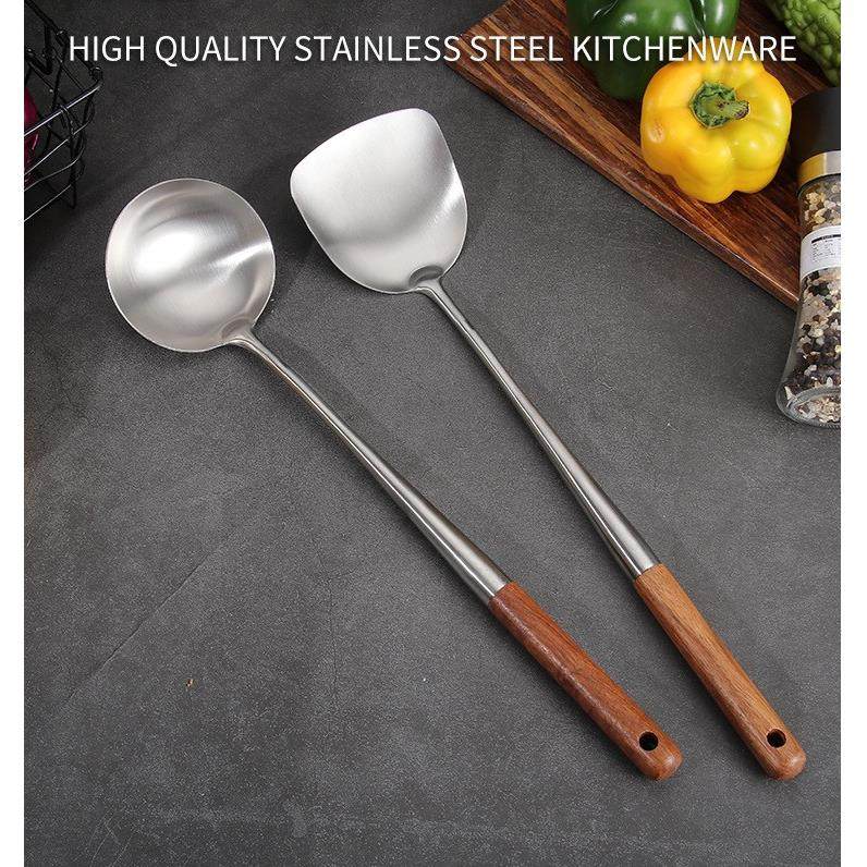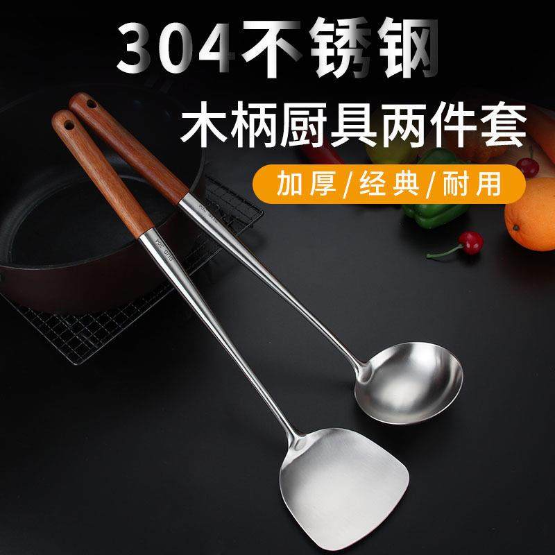 铁人304不锈钢炒勺铁锅炒铲家用炒菜锅铲子长木柄厨师专用铁锅铲