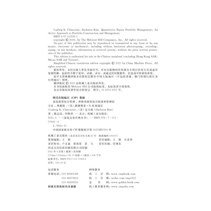 量化股票组合管理:积极型投资组合构建和管理的方法(典藏版)金融投资机械工业出版社凤凰新华书店旗舰店