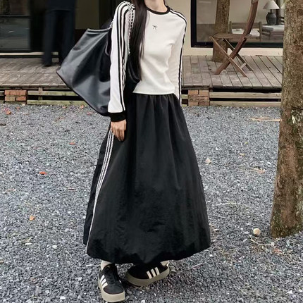 黑色日系三条花边花苞半身裙子大码女装胖mm显瘦梨型身材伯克利裙