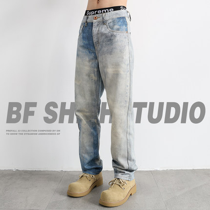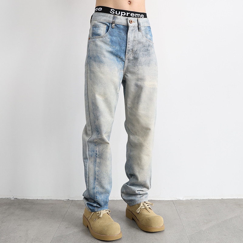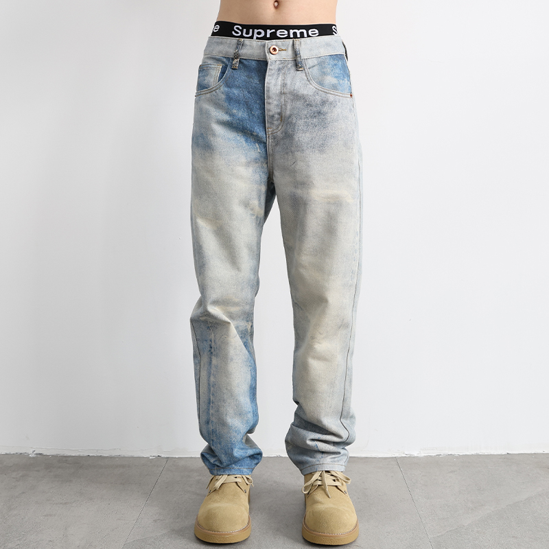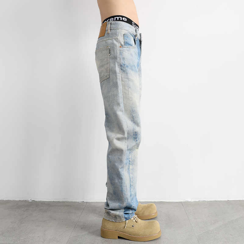 美式高街复古浅色渐变直筒牛仔裤男款宽松2025新款秋季休闲长裤子