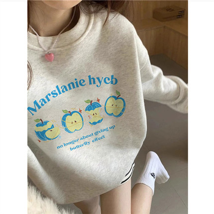 纯棉美式复古oversize圆领卫衣女