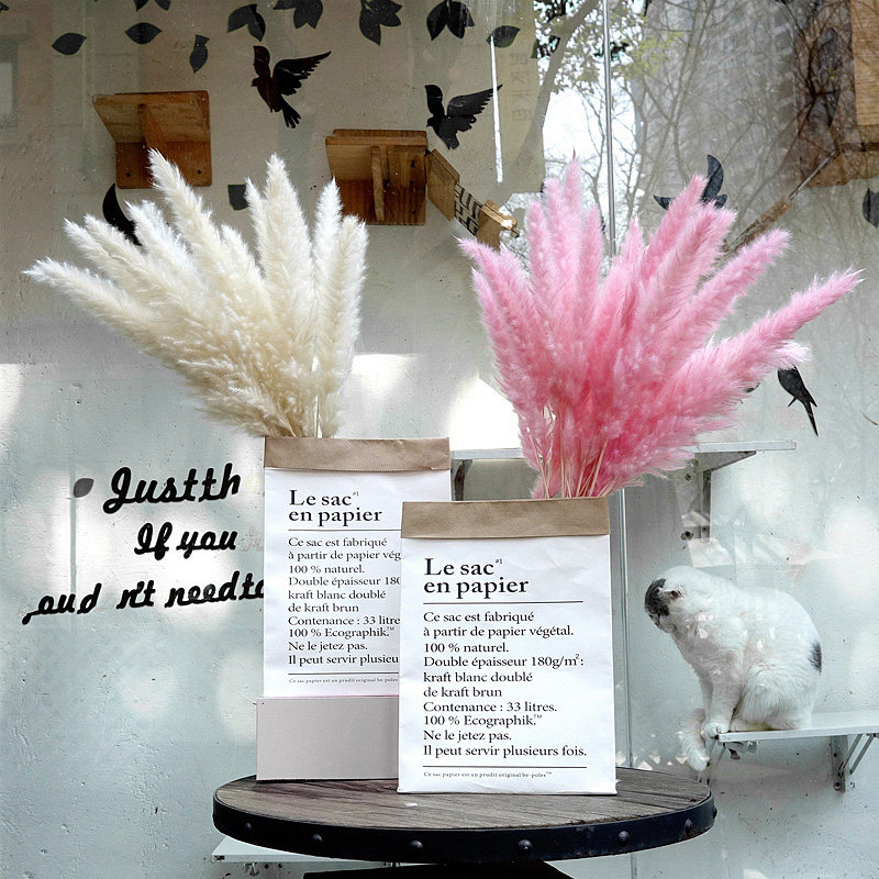 ins牛皮纸袋干花花束粉色芦苇干花蒲苇干花装饰芦苇装饰芦苇花草