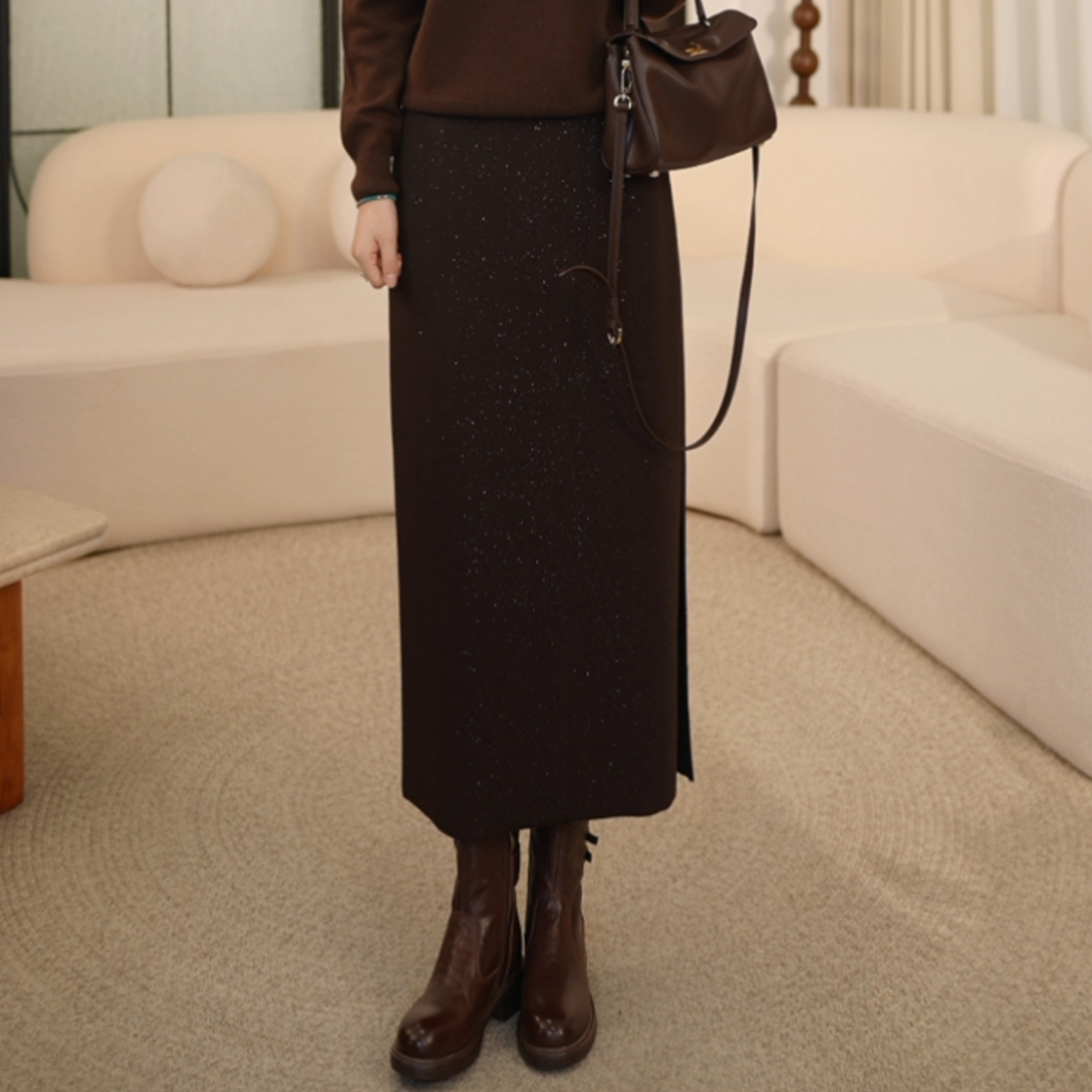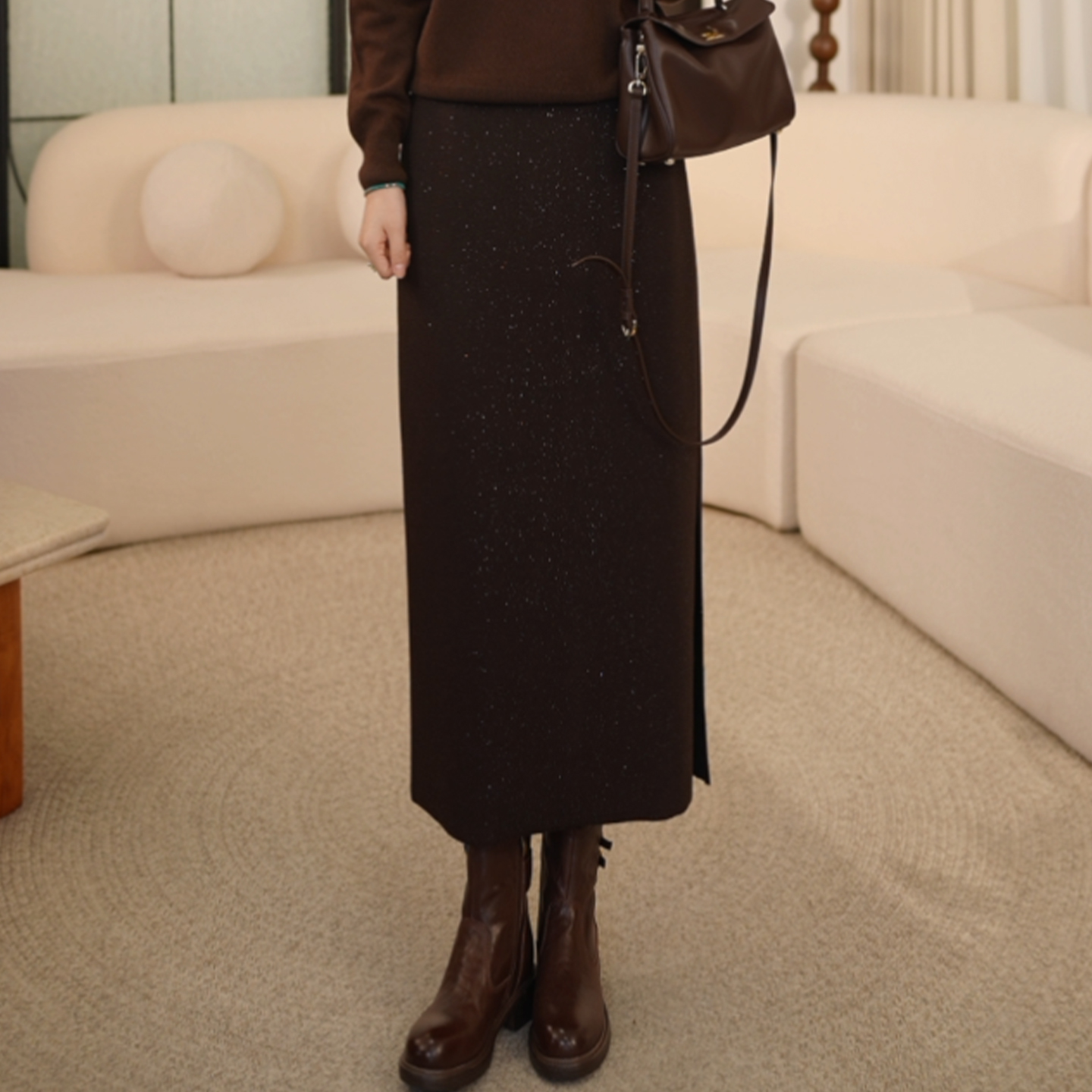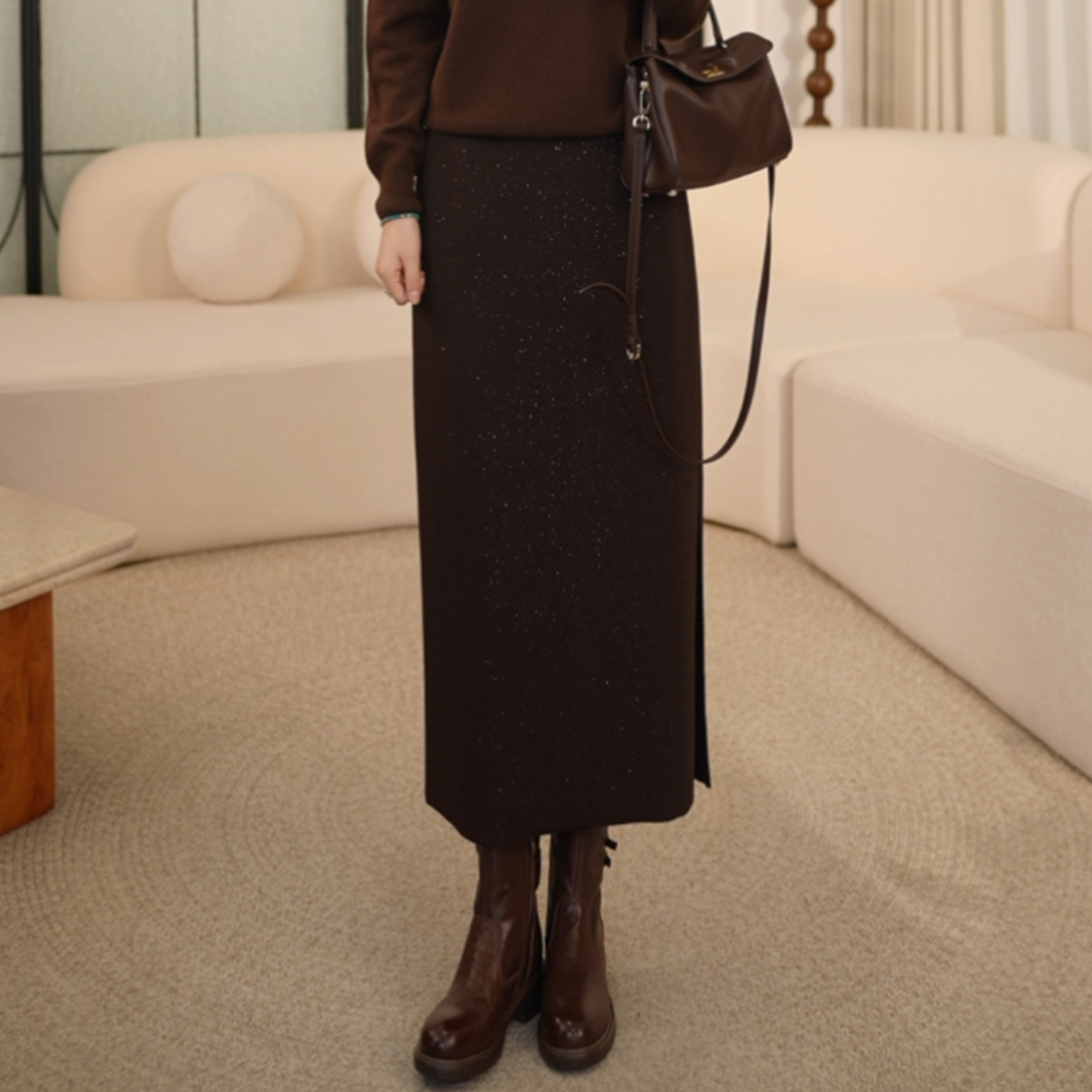 枫竺全松紧腰高级感毛呢亮片半身裙女2025秋冬中长款显瘦直筒裙子