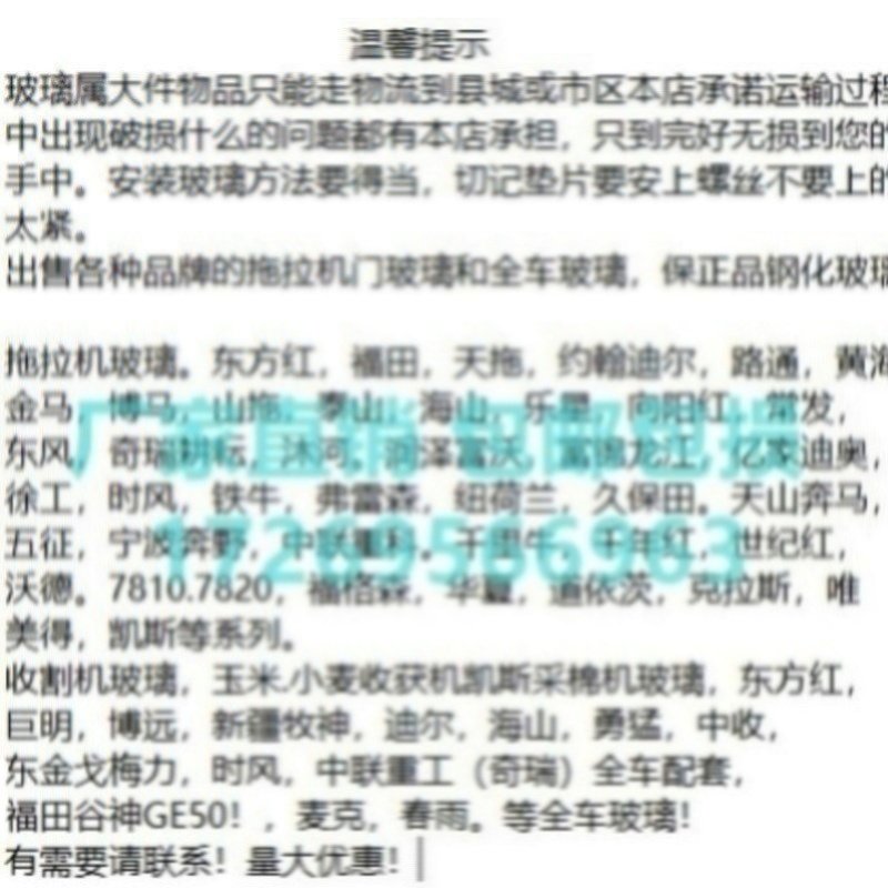 中联重科RH1204/o2104/2404拖拉机驾驶室前档车门后档钢化玻璃