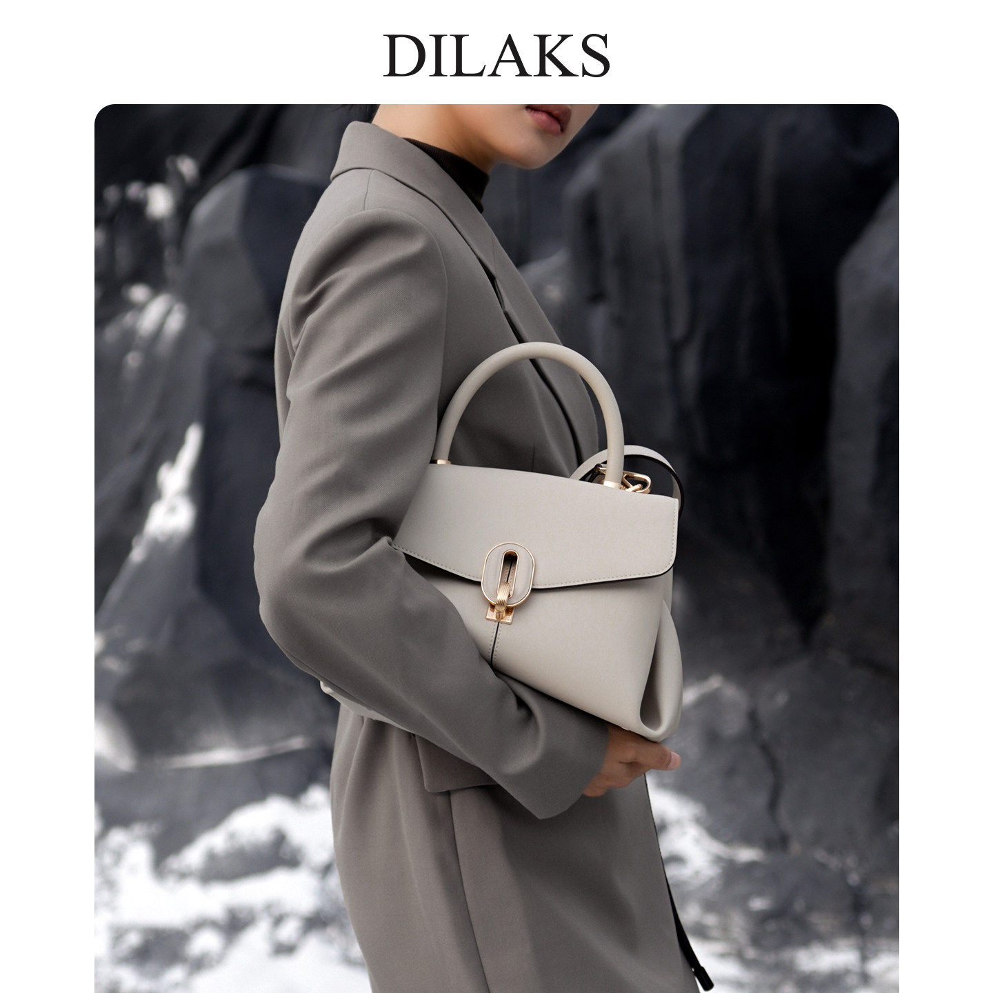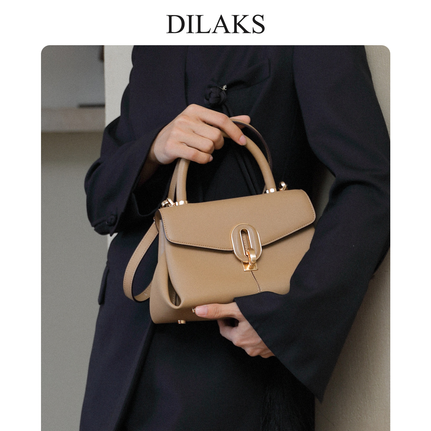 迪莱克丝牛皮锁扣手提包