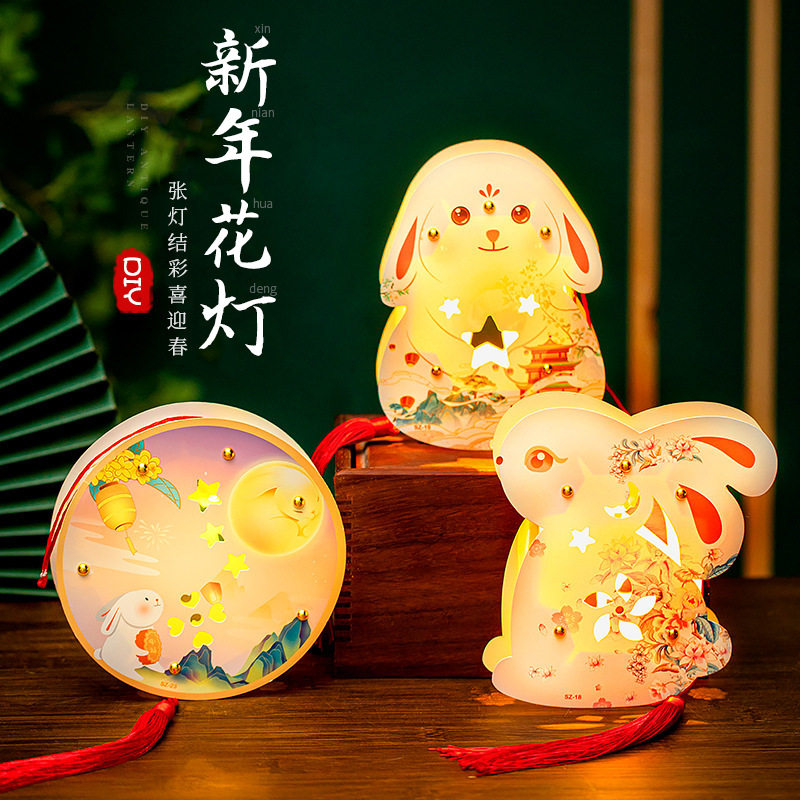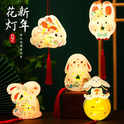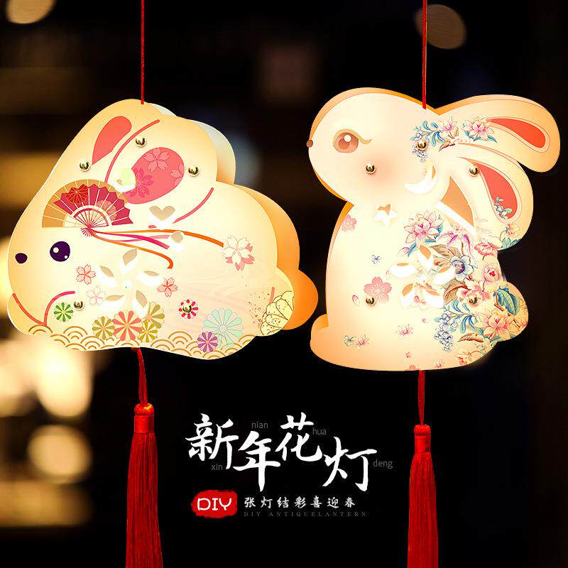 中秋兔子花灯端午手提灯笼DIY制作材料包元宵节创意发光布景挂饰