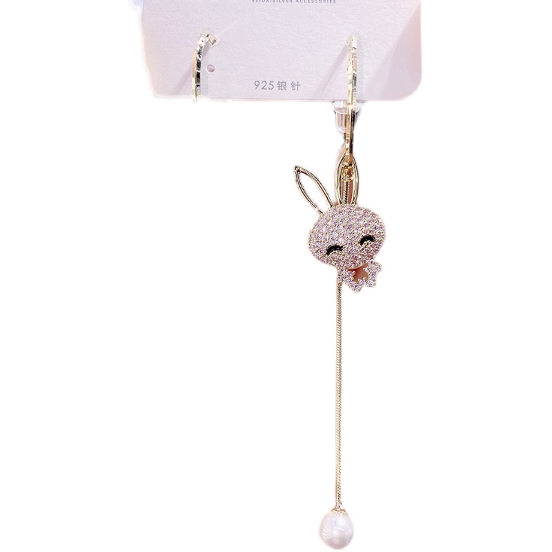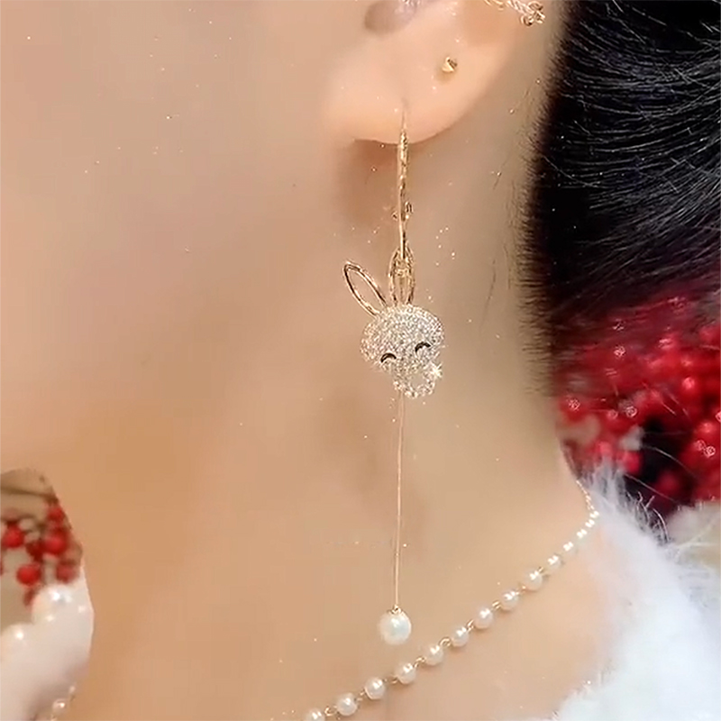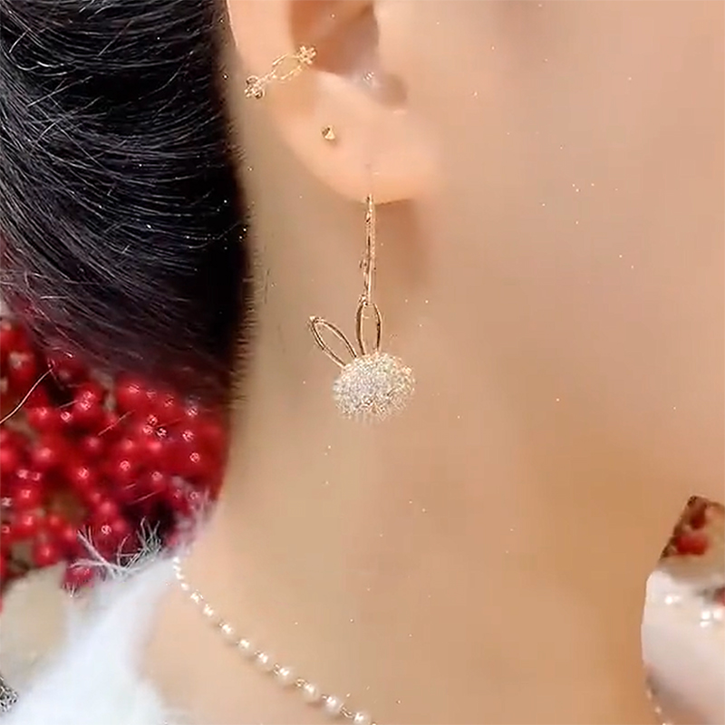 2025新款不对称兔子耳环时尚气质个性微镶耳坠高级感长款流苏耳饰