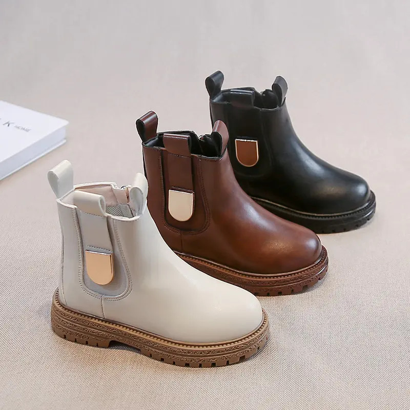 小黄鸭女童鞋马丁靴秋冬新款英伦风儿童短靴洋气女孩纸靴子加绒靴