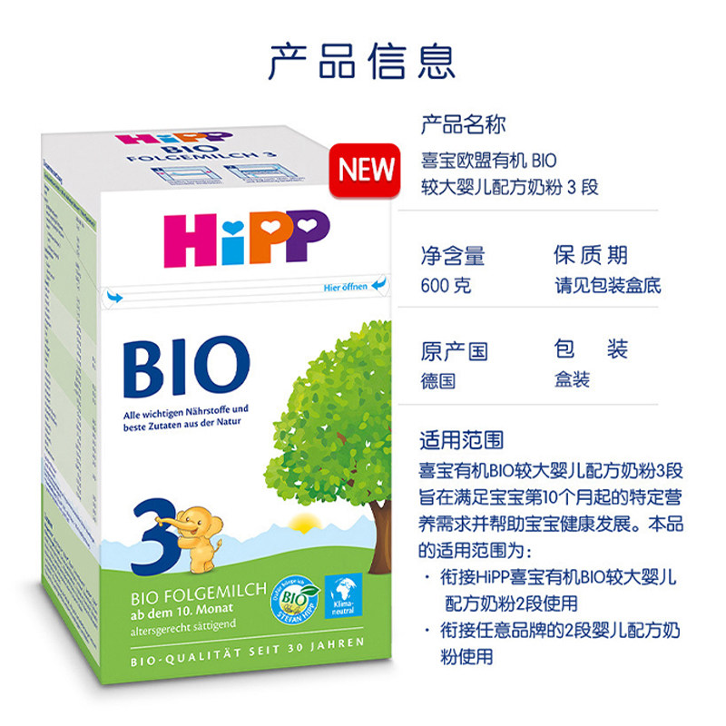 HiPP喜宝德国经典强化钙铁有机婴幼儿配方奶粉3段(10个月-2岁)